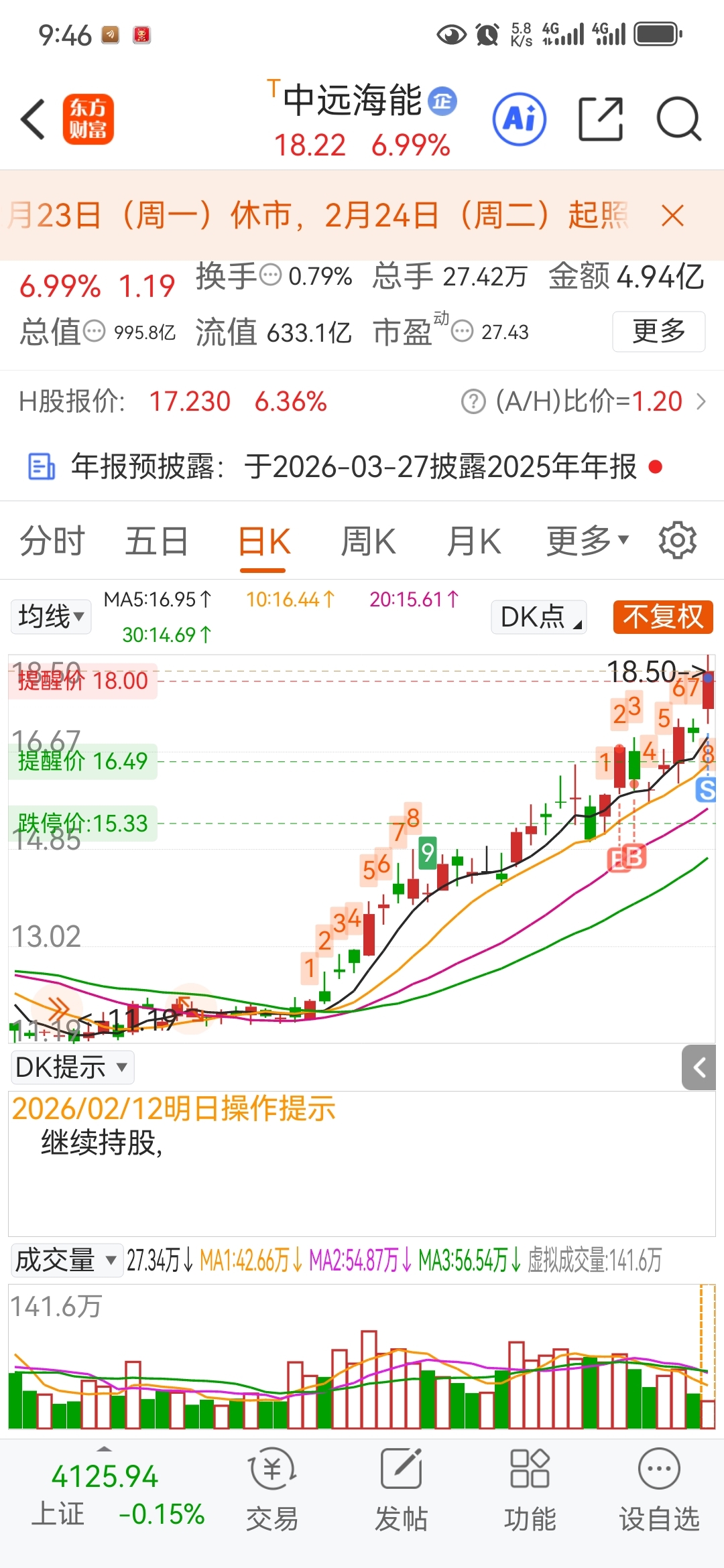 $中远海能(SH600026)$ 18.5是个砍,猜得真准。先撤。你们继续奏乐。