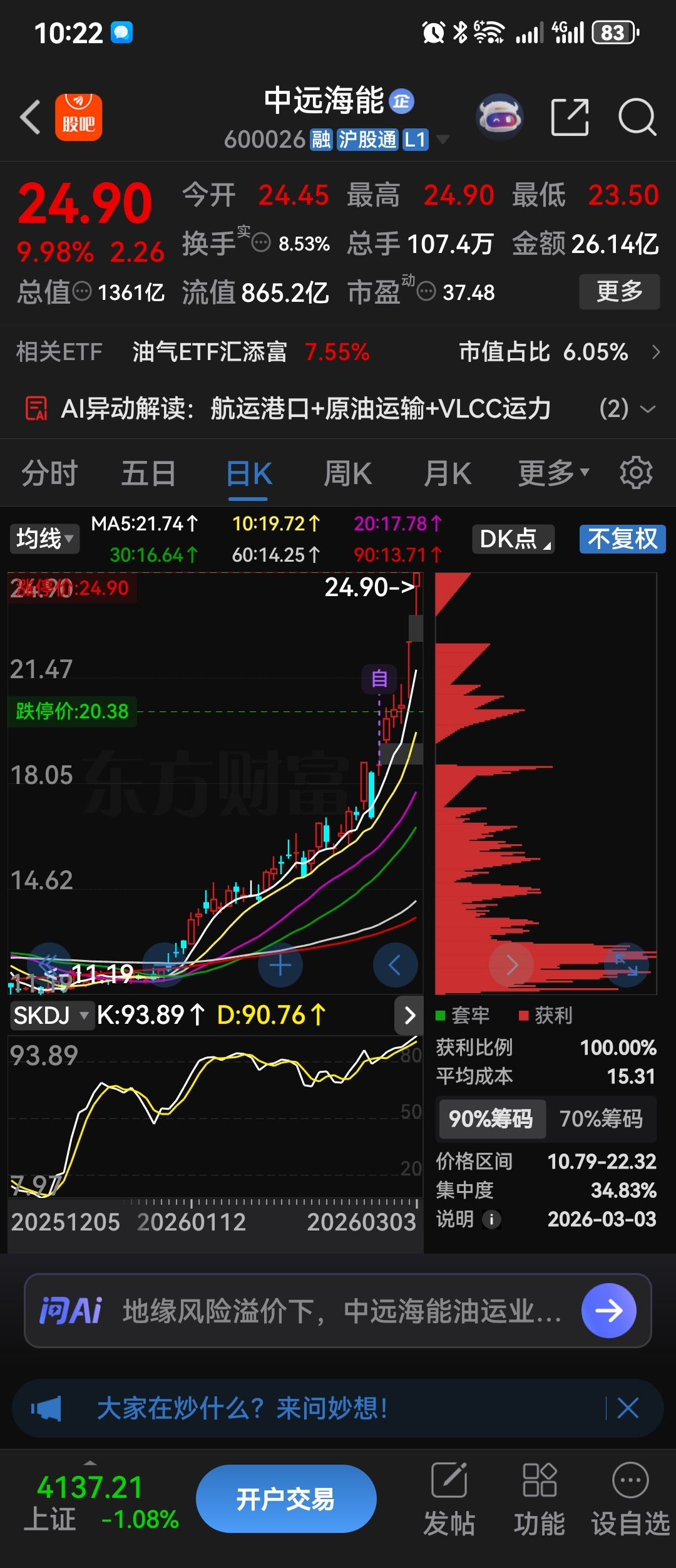 $中远海能(SH600026)$ 唉,选了没买
