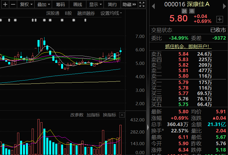 深康佳A:昨天早盘先是延续周一的强势高开高走,由于开盘后的市场承接有限,最终还是走冲高回落。到了午后再次拉升这才勉强收红,最终收盘收十字星,但价格还在均线上方,当前还在锁舱中,看接下来怎么走,最理想是能走根中阳这样后面就还能高看下,如果继续走震荡,就要考虑调舱换标的了。