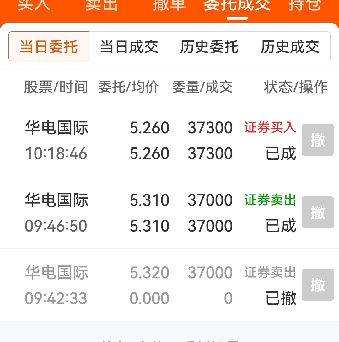 $华电国际(SH600027)$ 晒个单,有人问我今天最低5.26,你是怎么买到的