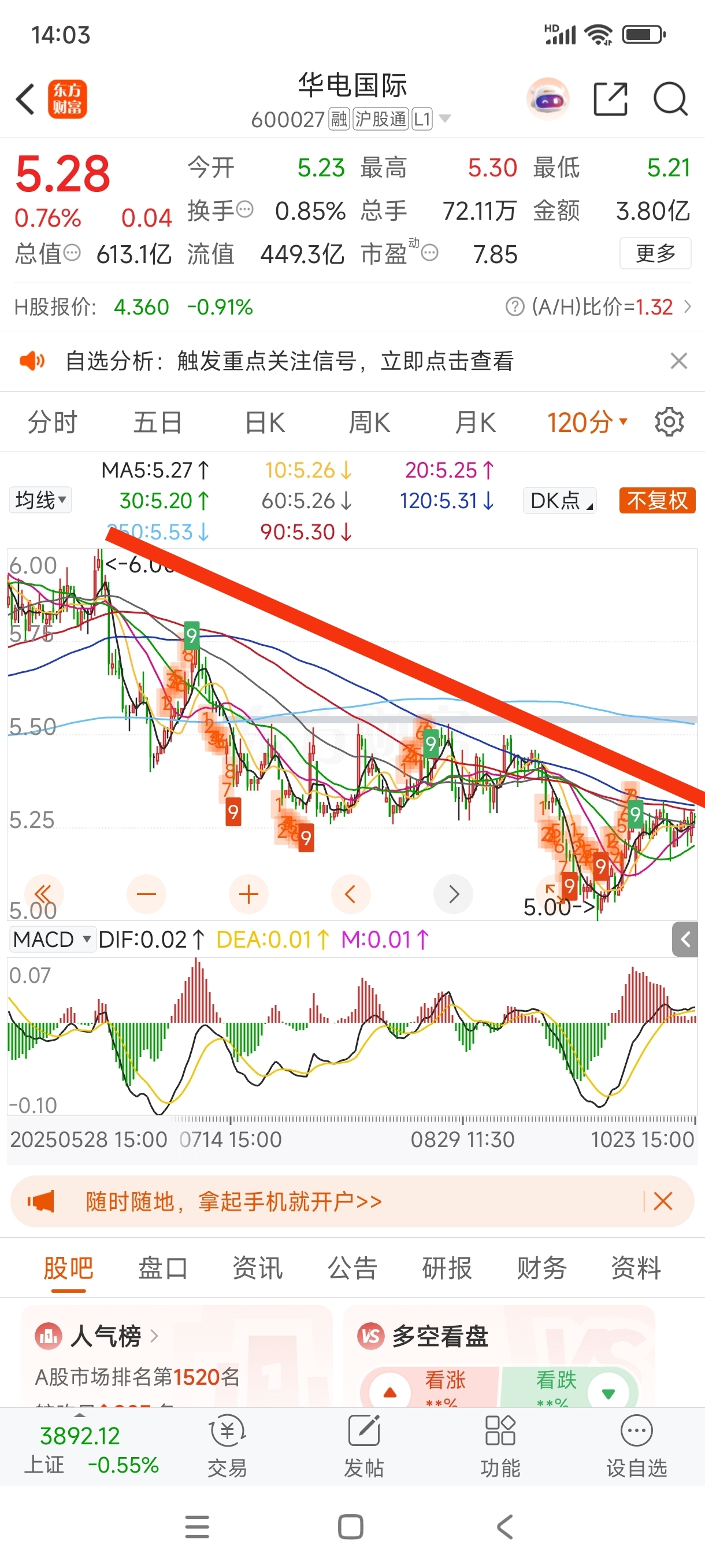$华电国际(SH600027)$ 见好就收,还是那句话,一直反压。下降趋势不改。