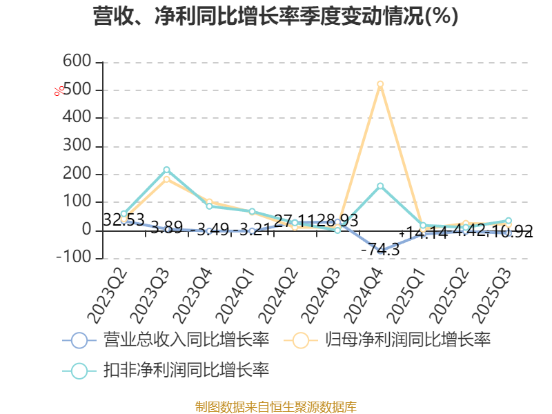 资产重大变化方面,截至2025年三季度末,公司固定资产较上年末减少3.94%,占公司总资产比重下降1.28个百分点;在建工程合计较上年末增加31.43%,占公司总资产比重上升1.27个百分点;长期股权投资较上年末增加4.44%,占公司总资产比重上升1.16个百分点;存货较上年末减少41.31%,占公司总资产比重下降0.88个百分点。