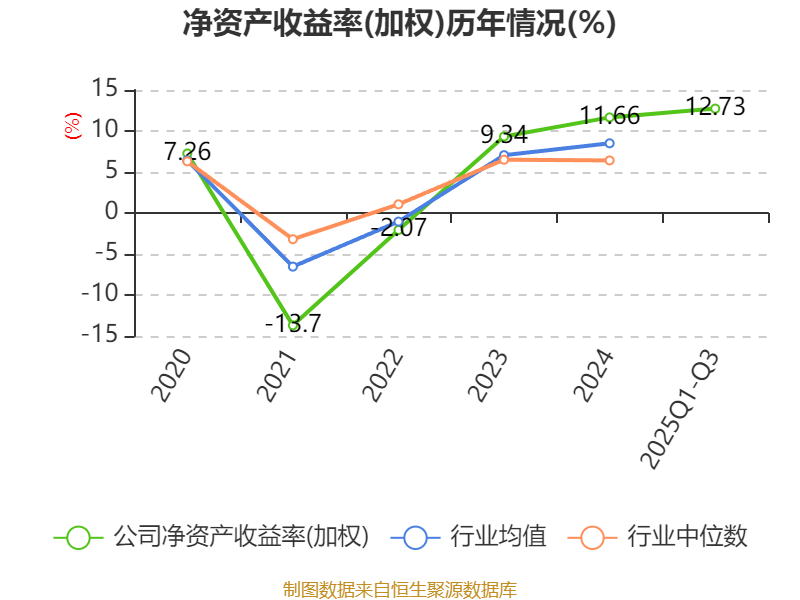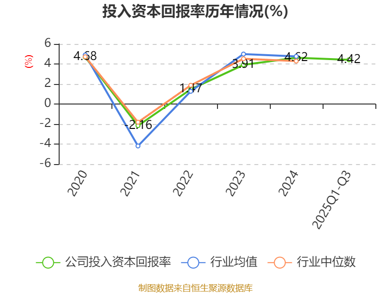 盈利能力方面, 2025年前三季度公司加权平均净资产收益率为12.73%,同比上升1.87个百分点。公司2025年前三季度投入资本回报率为4.42%,较上年同期上升0.4个百分点。