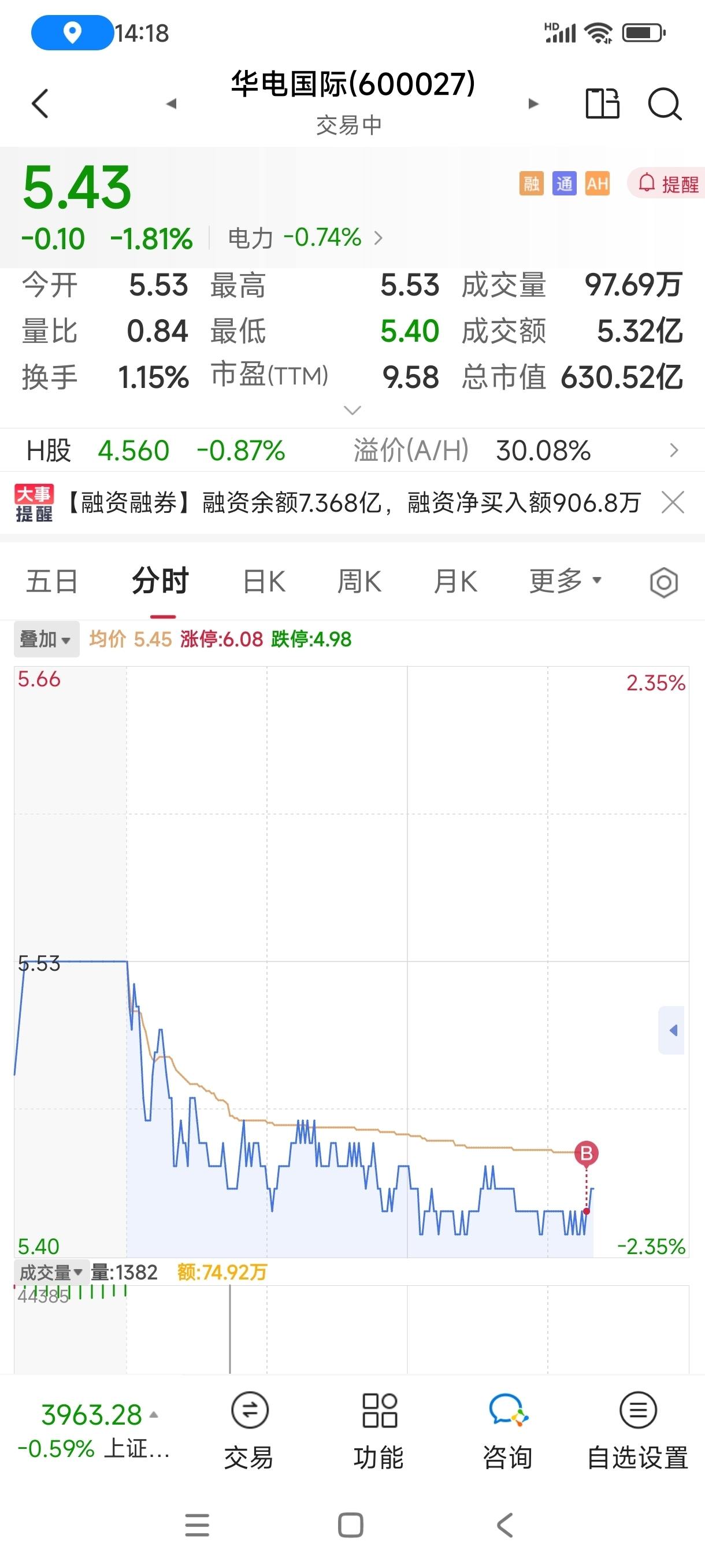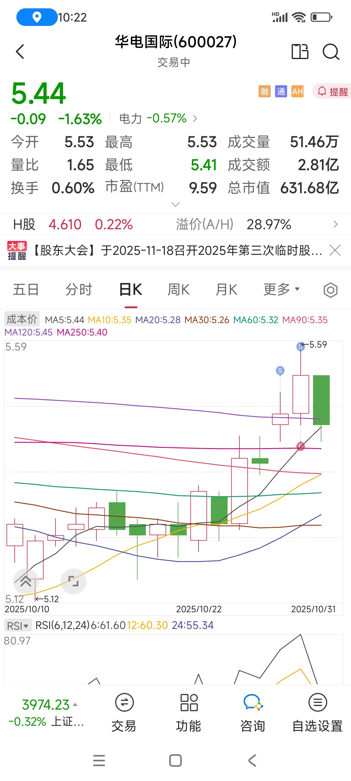 $华电国际(SH600027)$ 正当卖出科技时,542又加仓垃圾电力一笔。