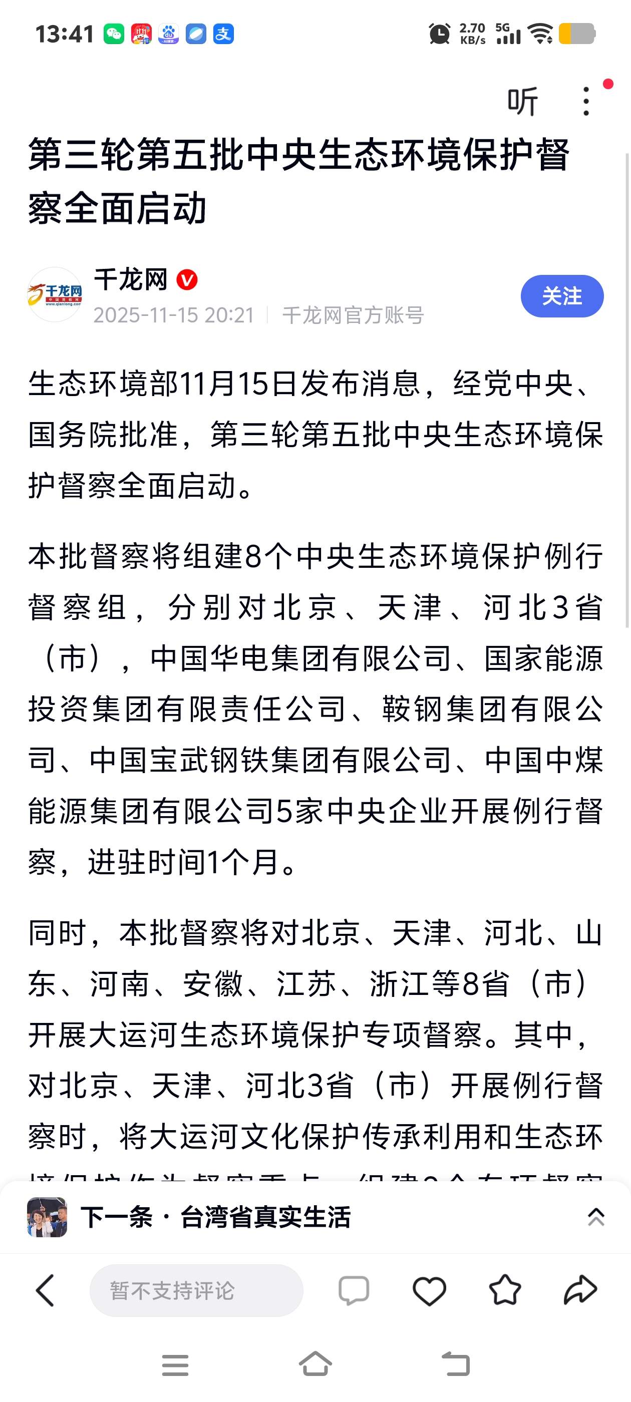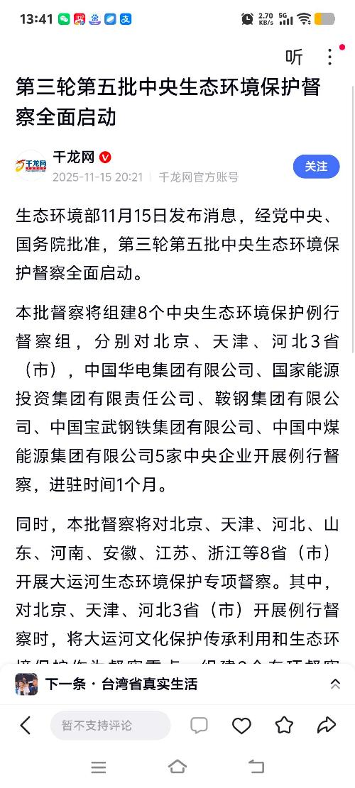 $华电国际(SH600027)$  下周开始中央生态环境督察组对华电进行为期一个月的督察。
