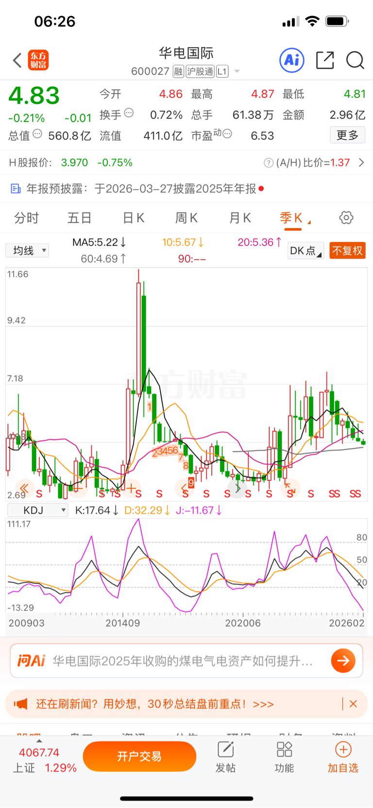 $华电国际(SH600027)$ 距离底部不远了