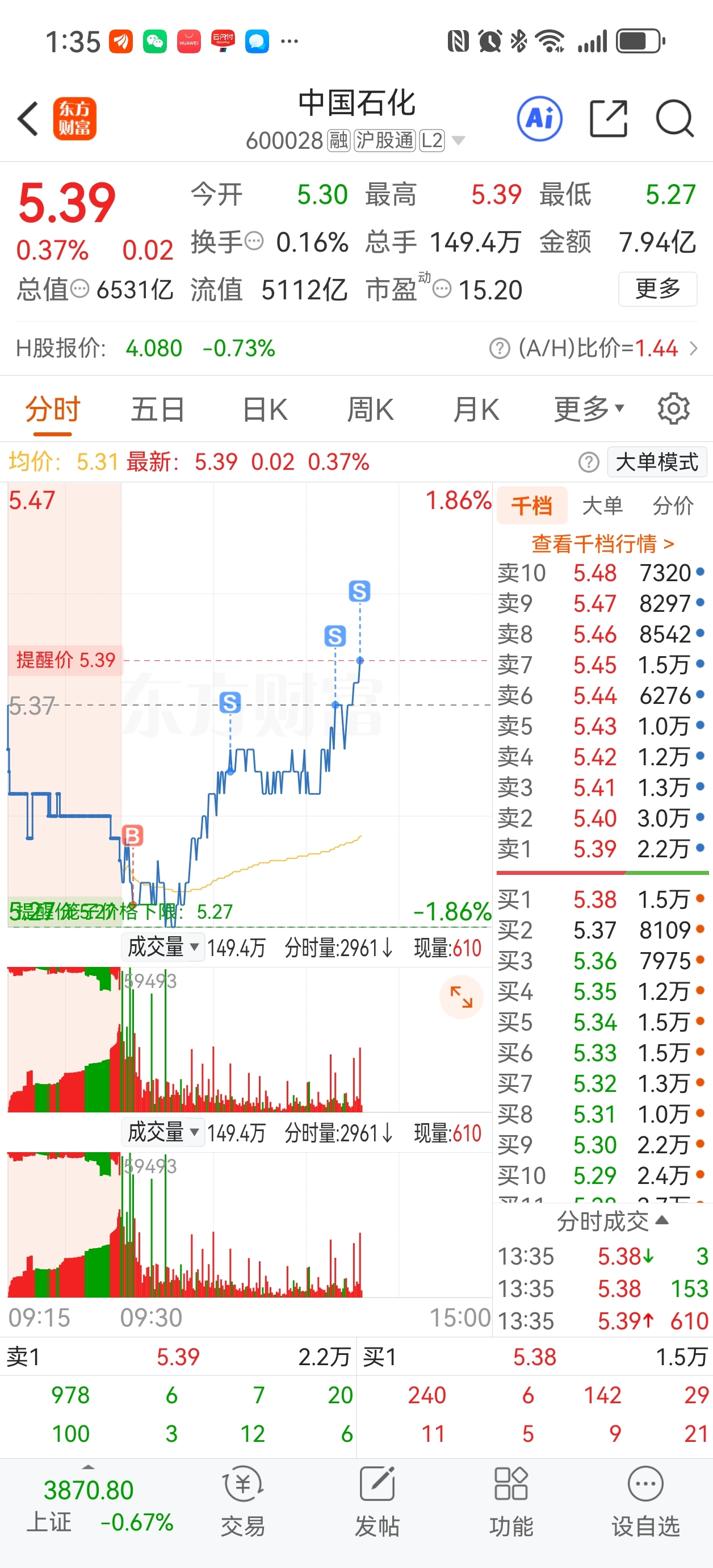 $中国石化(SH600028)$ 你也终于让我做了一次T!