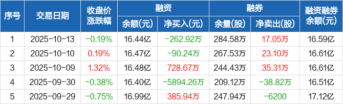 中国石化:融资净偿还262.92万元,融资余额16.44亿元(10-13)
