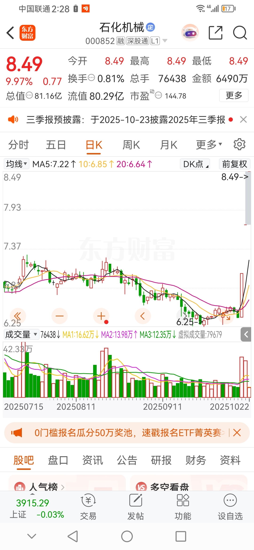 石化机械这才是王者,石化只是辅助诱多淘,散户得
