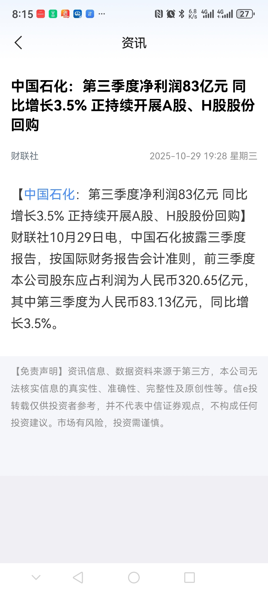 $中国石化(SH600028)$