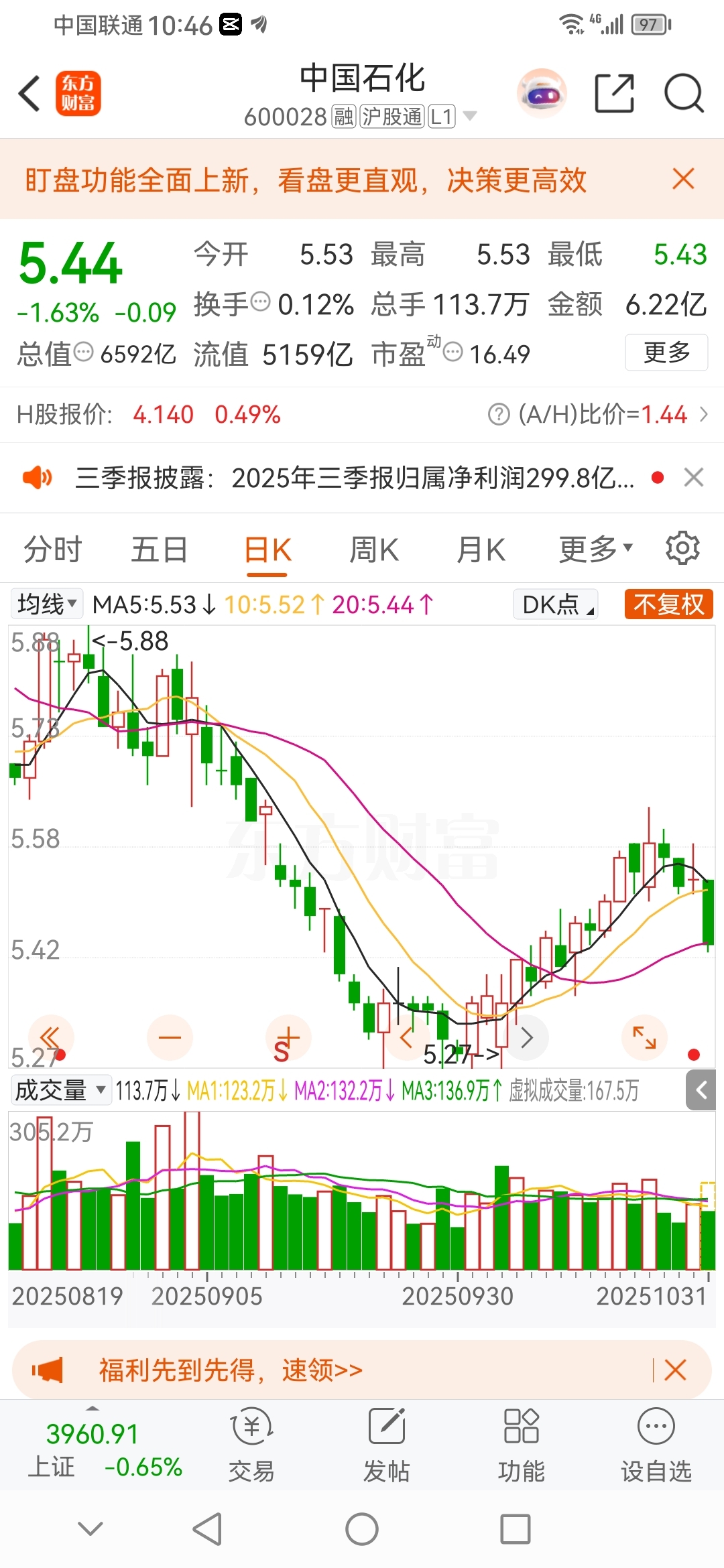 $中国石化(SH600028)$ 10天涨了一角钱,一天跌下来甚至还多,破位严重了,抓紧撤退,换中国石油