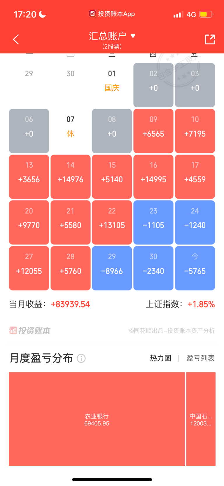 感谢农行石化,本金走了以后连续大跌三天,避免了一些本金损失,这个月收益历史新高,