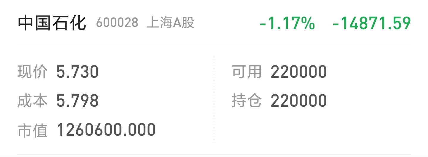 $中国石化(SH600028)$ 我想回本,我想赚钱。我拿了一年了,兄弟们,我的要求过分吗?