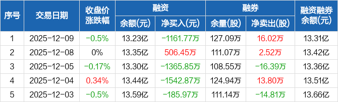 中国石化:融资余额13.23亿元,创近一年新低(12-09)