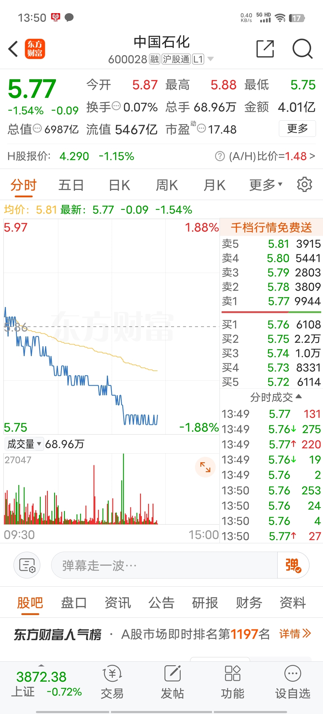 $中国石化(SH600028)$ 放量下跌!都是卖的!