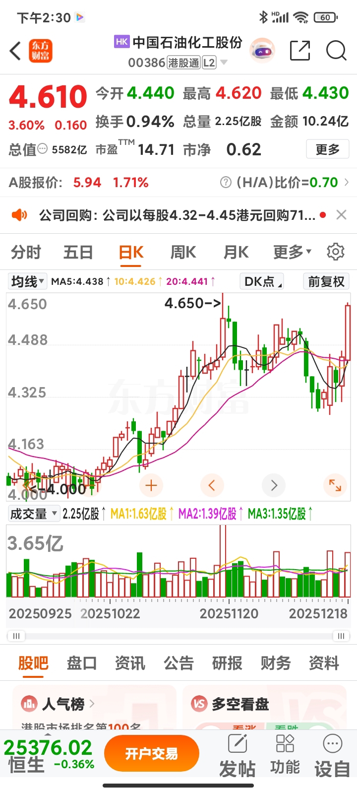 $中国石化(SH600028)$ 中国石化为什么涨?看看h股就明白了