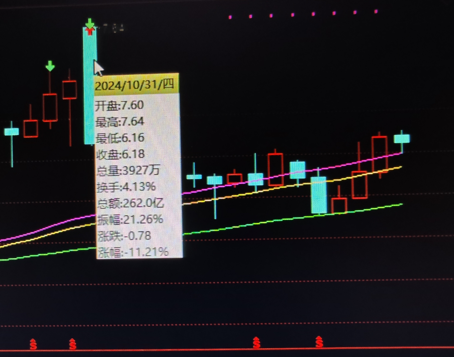 这是我按我自己的习惯经常看的,中长线,月线均线系统。