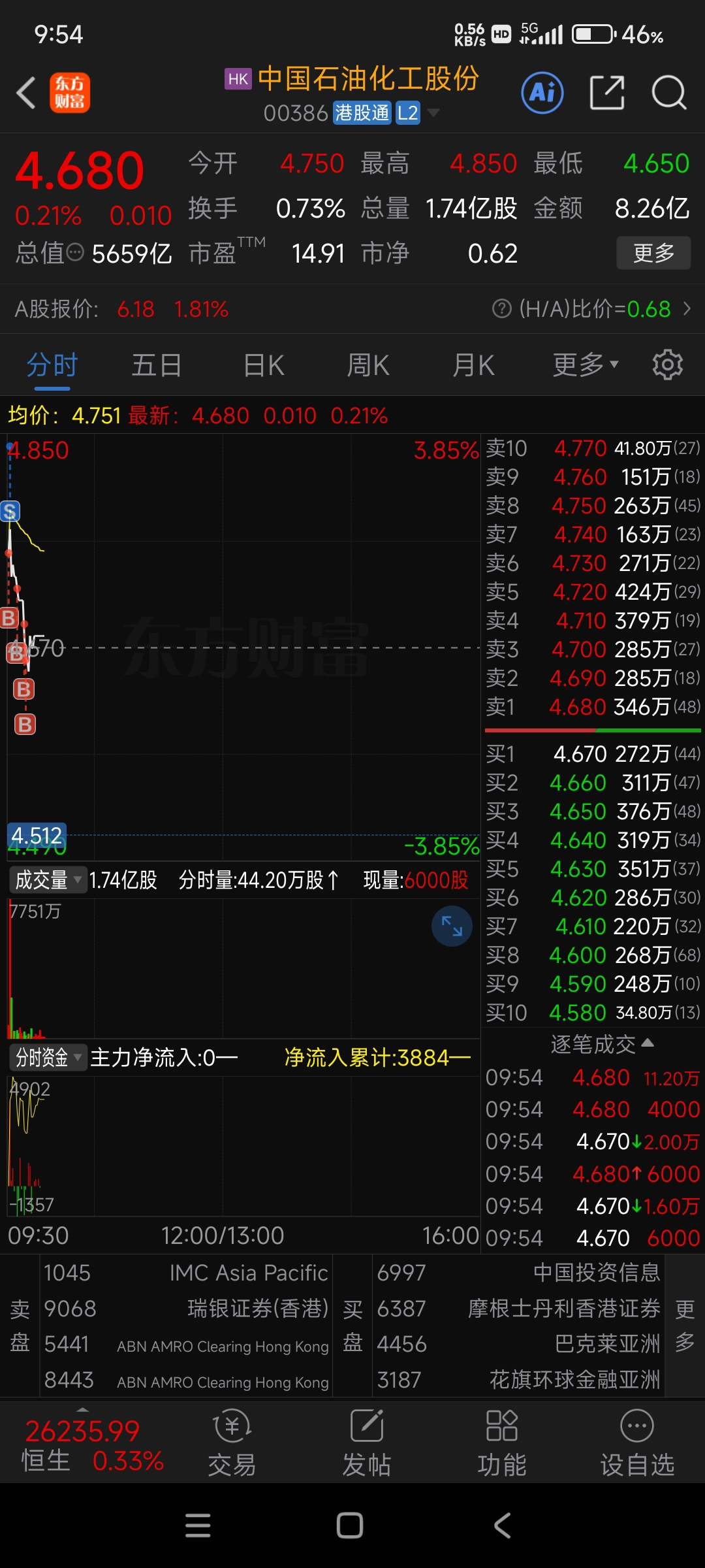 $中国石化(SH600028)$ 买了港股了,会不会上套。目前小挣