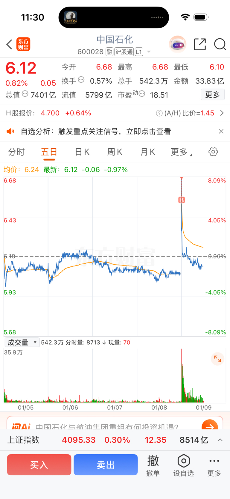 $中国石化(SH600028)$ 哈哈哈 买到了,我要发财了,哈哈哈