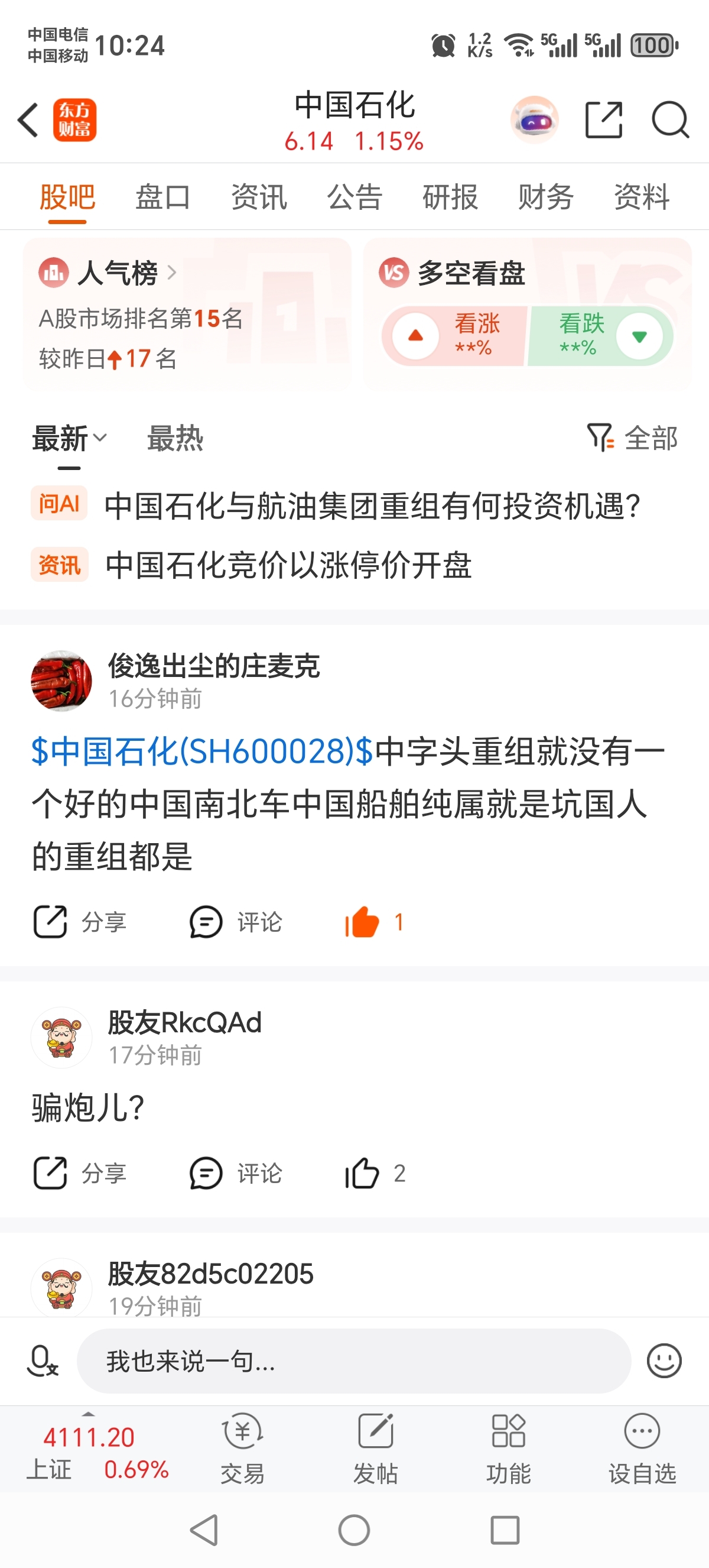 $中国石化(SH600028)$