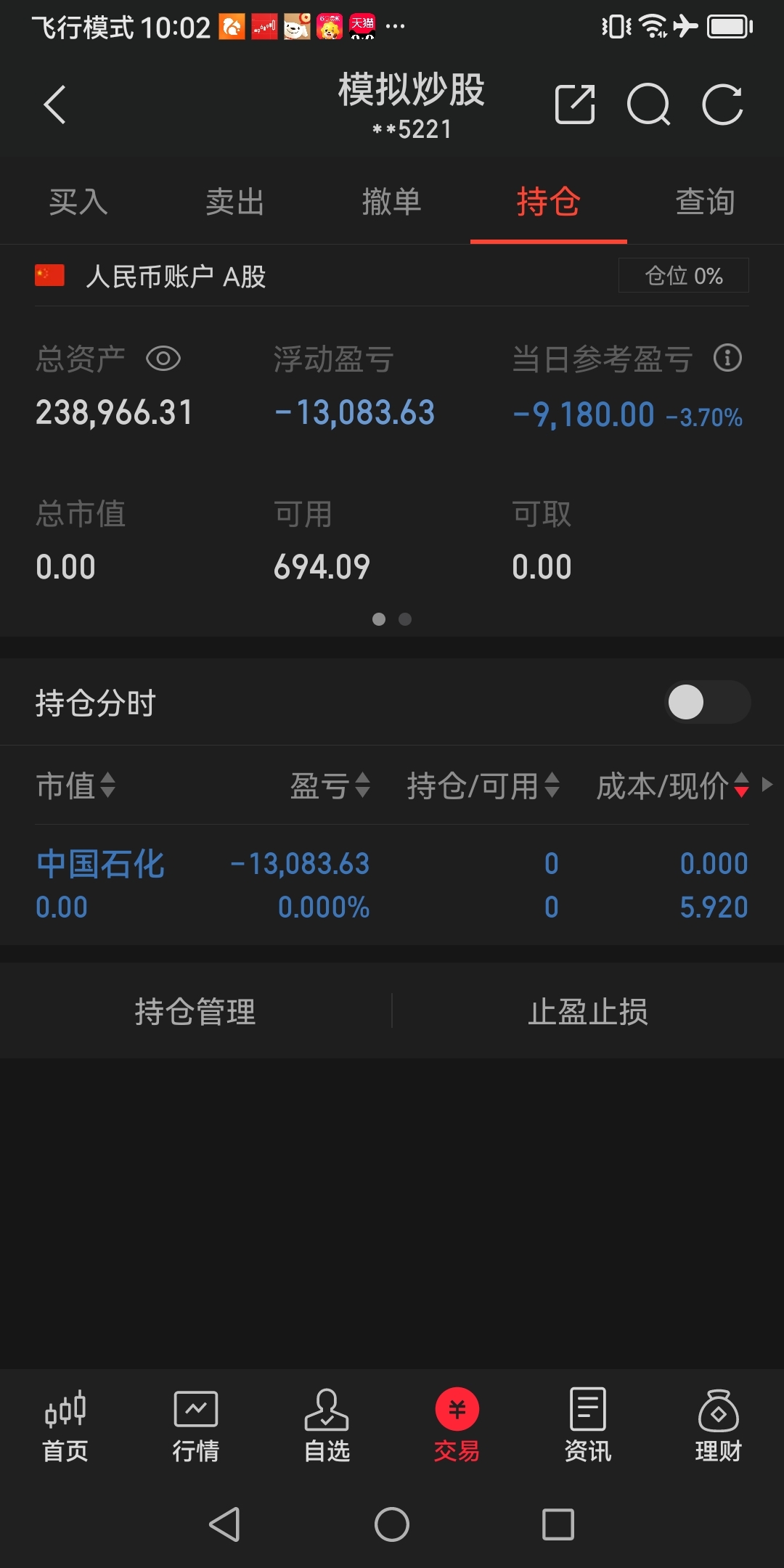 $中国石化(SH600028)$ 本来前面玩玩手运气,还赚了不少,结果上周听了央视大气重组,收盘抄底,谁想是这运气,万幸,只是玩玩而己。