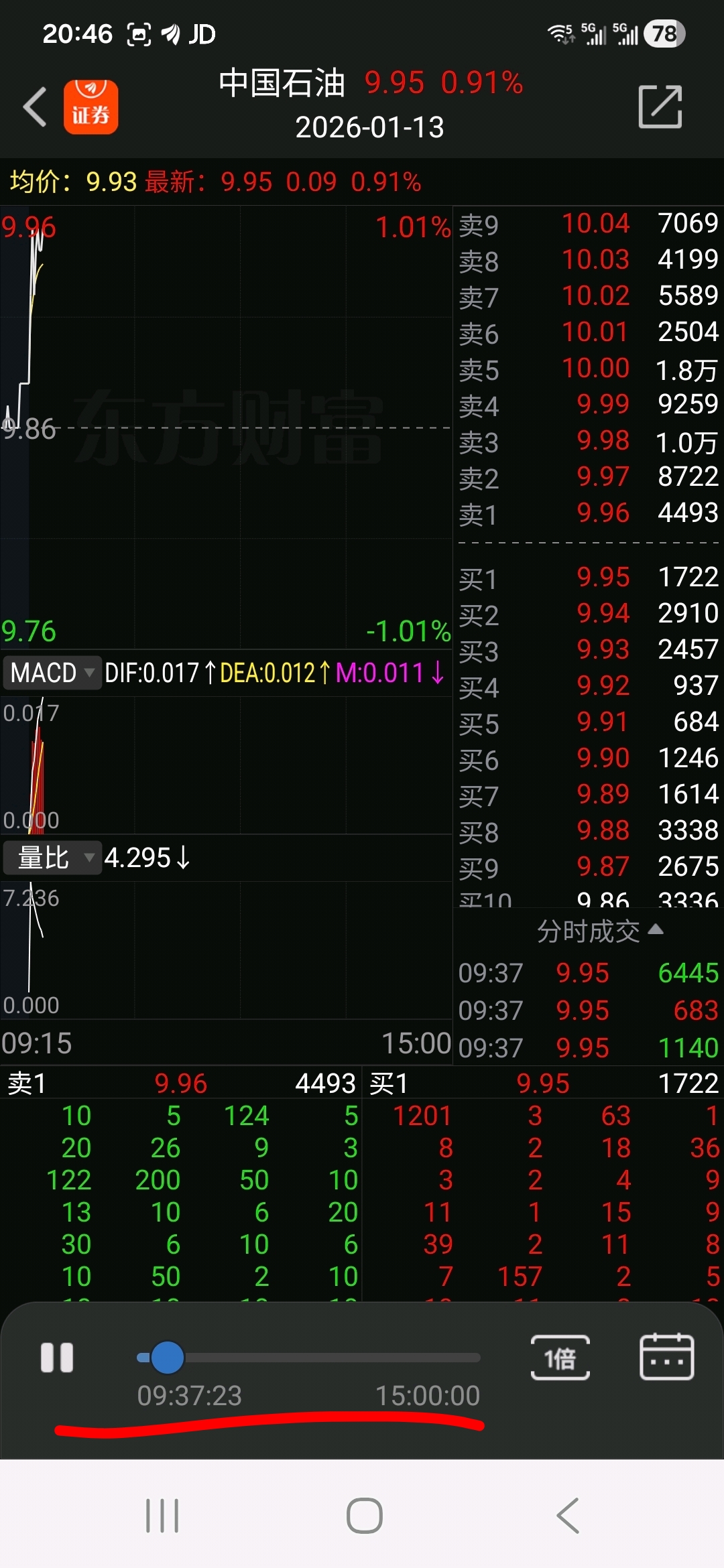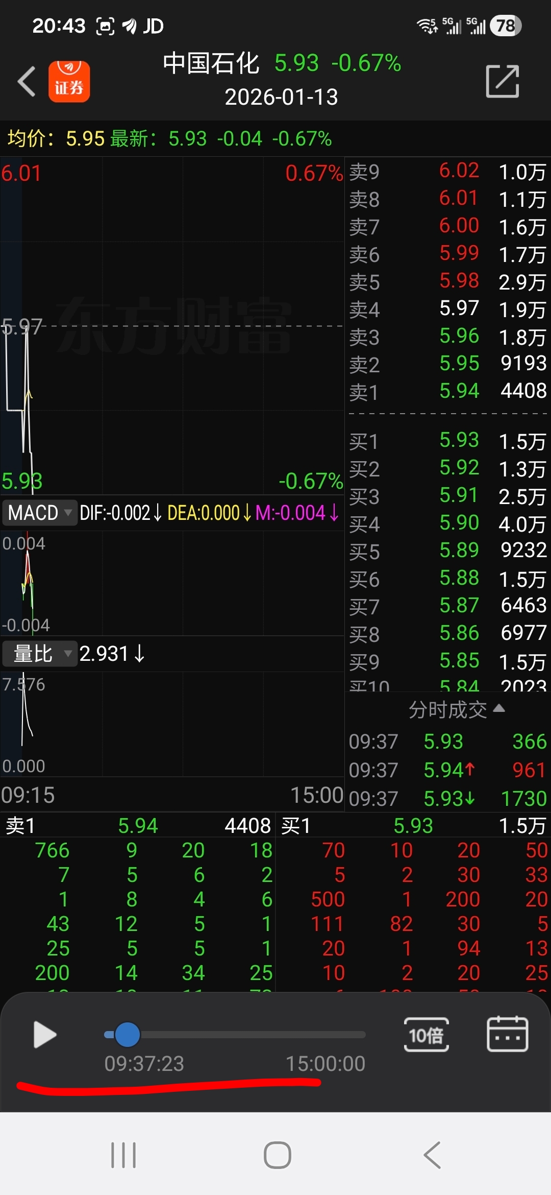 复盘,早盘同样的时间,截然相反的选择,也就是说中石化的庄家在9:37这一时刻的操