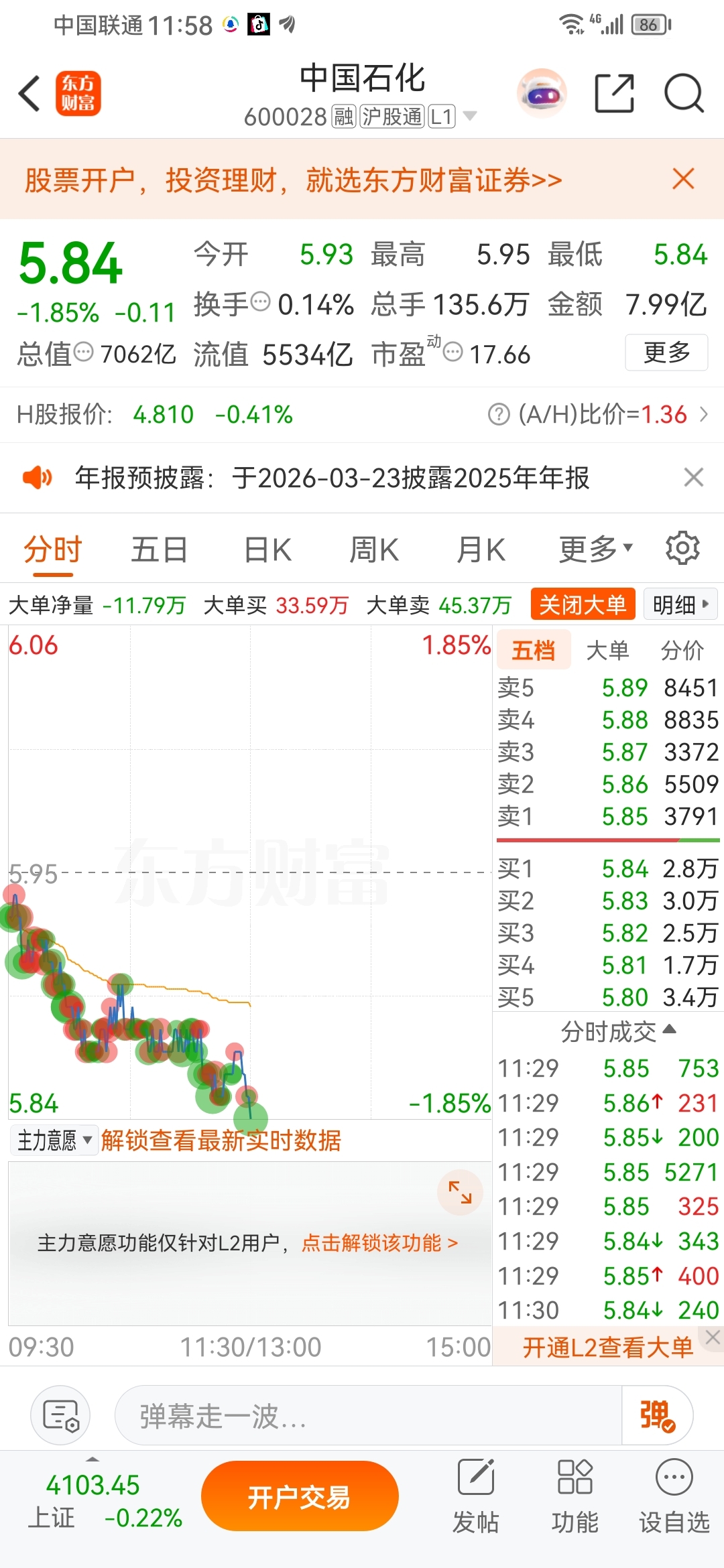 $中国石化(SH600028)$ 放量下跌啦!股息率很低了现在!别说10年,20年也回不了本儿了!关键股票价格不涨属于硬亏损啊!抓紧调仓换股才是王道