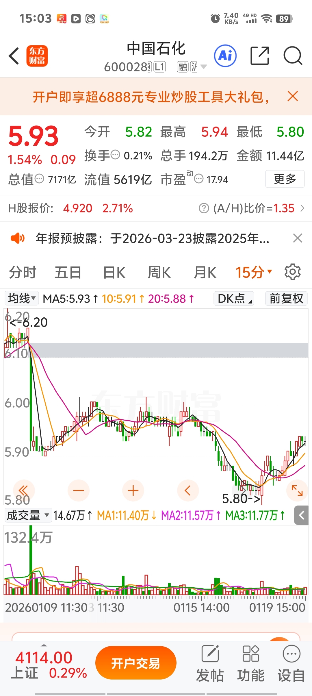 $中国石化(SH600028)$ 6.16明天补缺口,奥利给