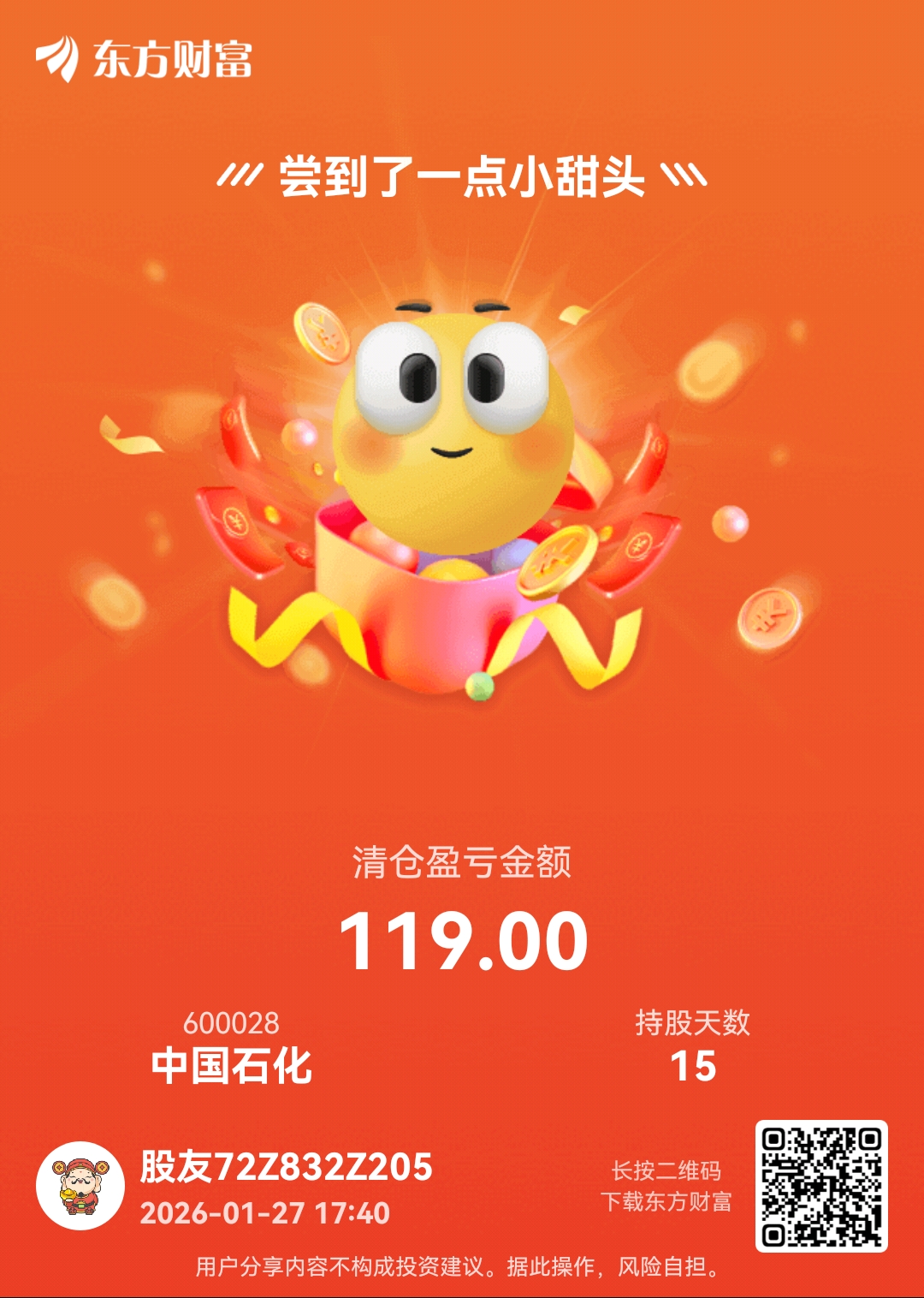 $中国石化(SH600028)$ 埋伏了15天,总投资1580元,平均一天9元,今天跑了,我只记得不贪心,3个字。