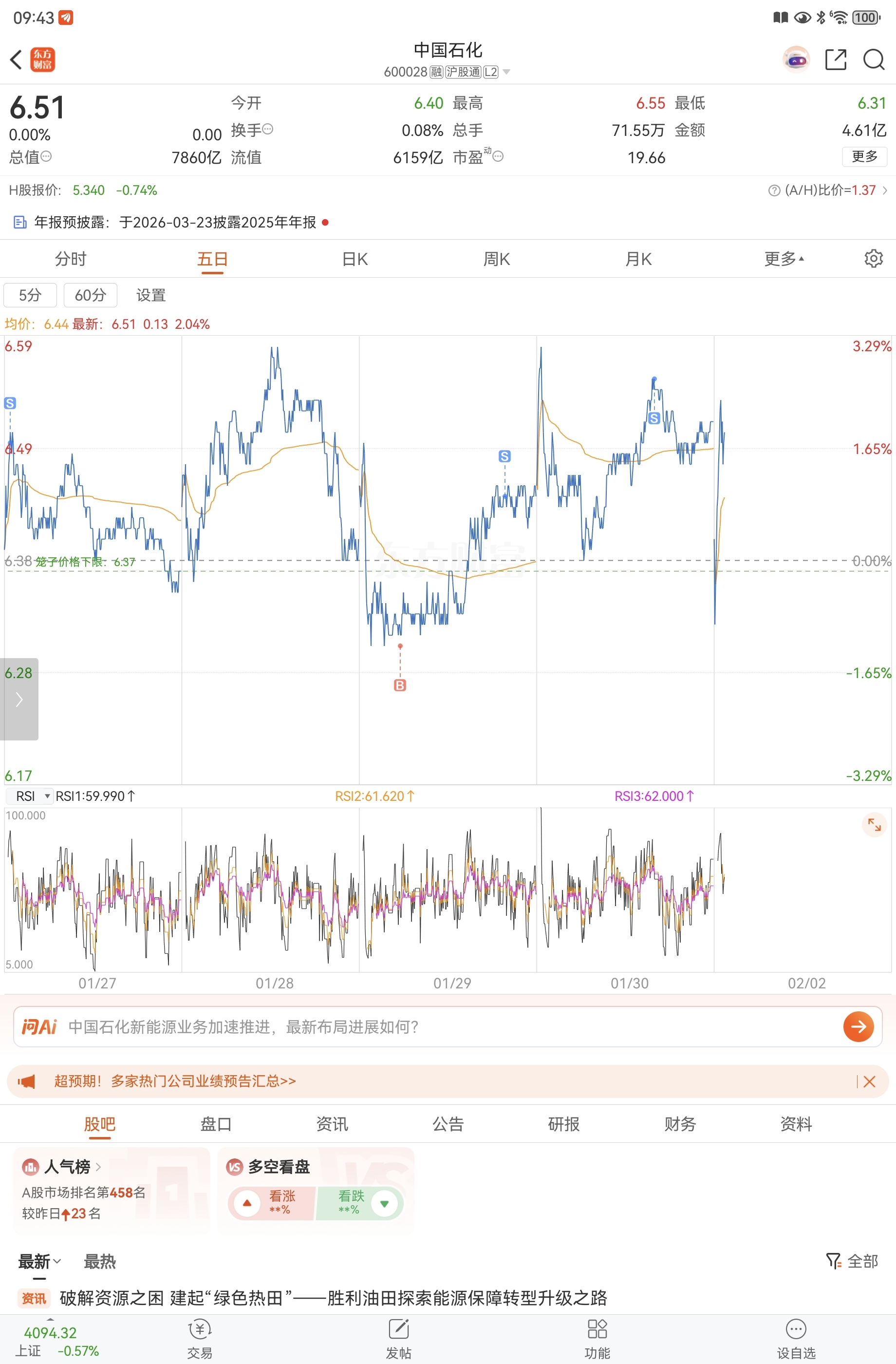 $中国石化(SH600028)$ 一早5.3补仓没买到