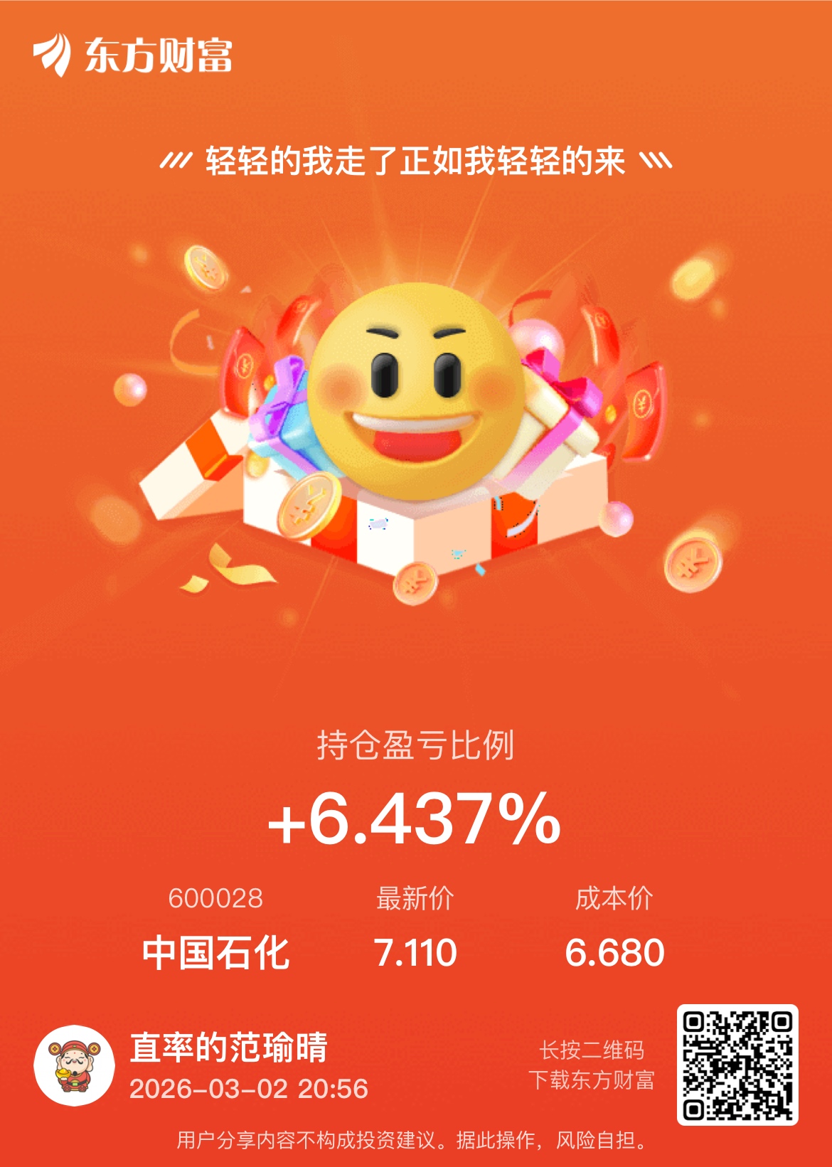 温馨提示: 1.根据《证券法》规定,禁止编造、传播虚假信息或者误导性信息,扰乱证券市场;2.用户在本社区发表的所有资料、言论等仅代表个人观点,与本网站立场无关,不对您构成任何投资建议。用户应基于自己的独立判断,自行决定证券投资并承担相应风险。《东方财富社区管理规定》