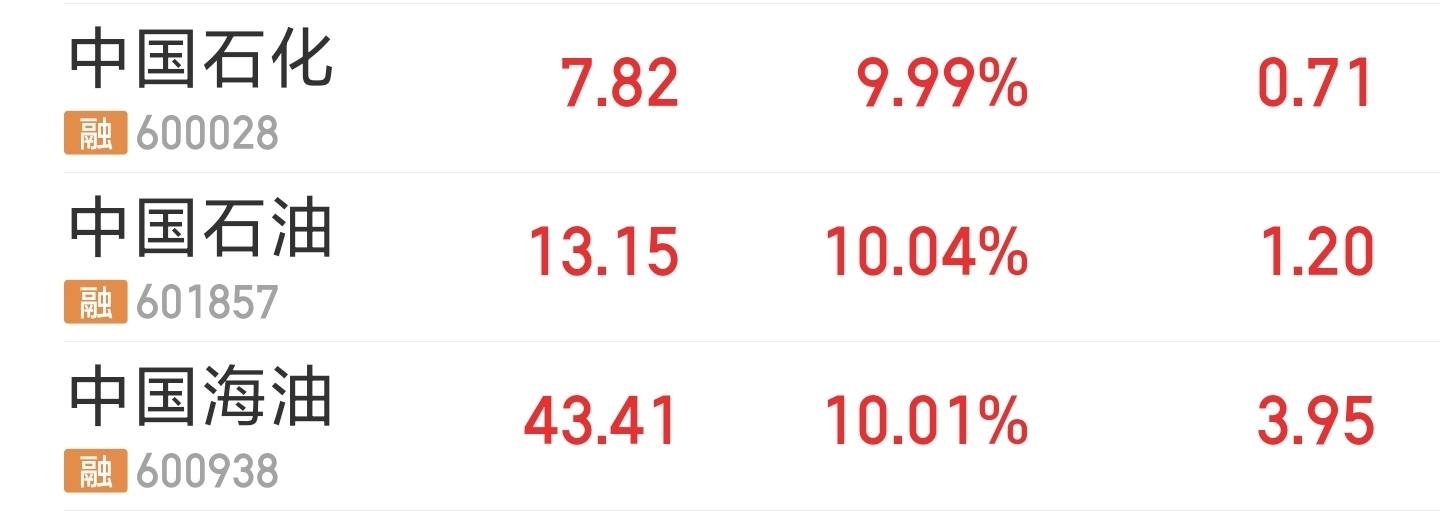 $中国石化(SH600028)$ 太强了,三桶油,两连板,太强了。牛