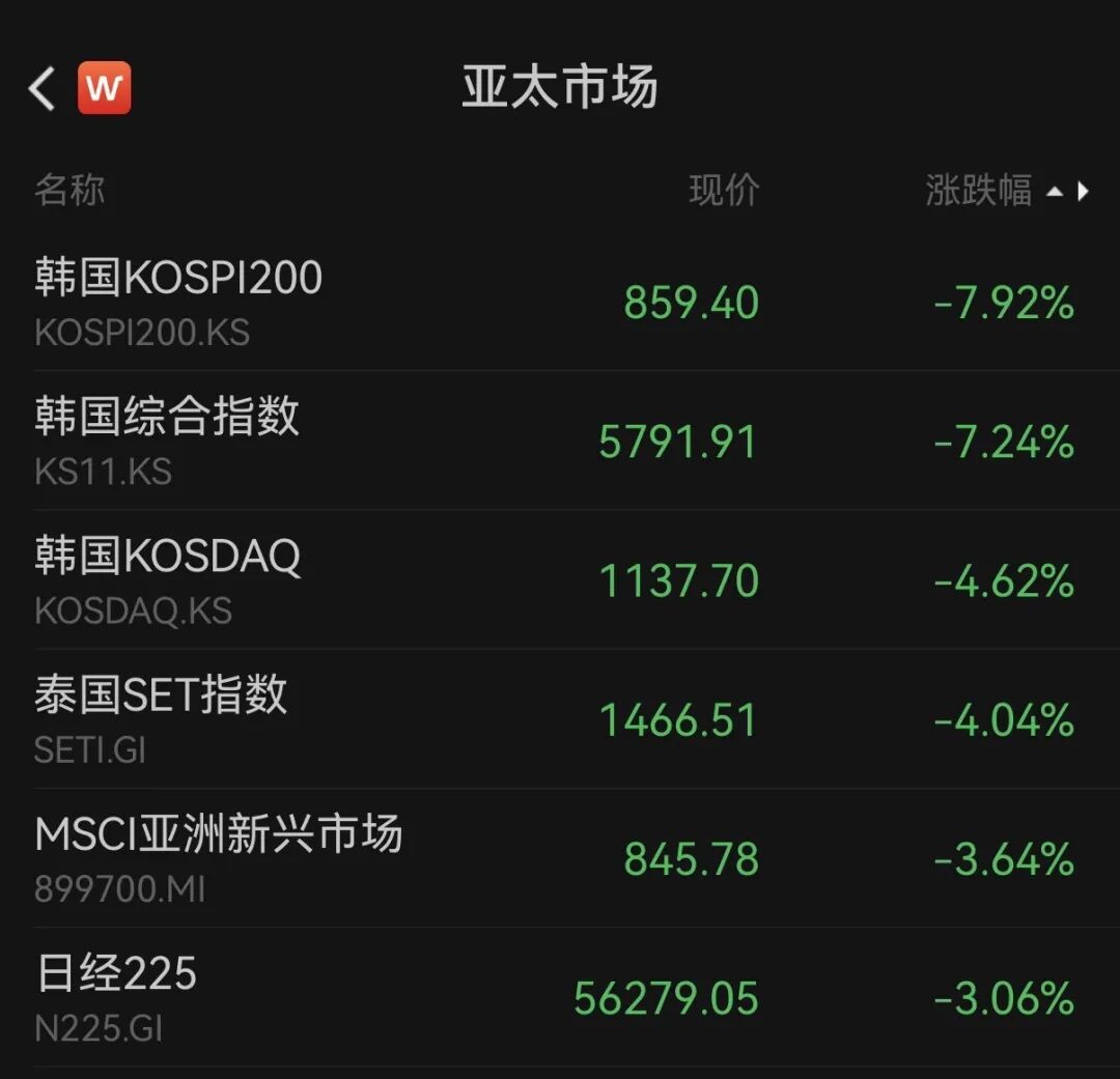 今日(3月3日),受中东局势影响,亚洲股市普遍大跌,韩国综合指数暴跌超7%,创1年半来最大单日跌幅;日经225指数大跌超3%,泰国SET指数重挫超4%,香港恒生指数、越南胡志明指数、印尼综指等纷纷大跌。