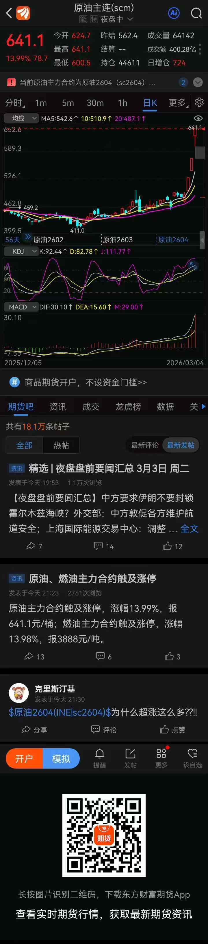 $中国石化(SH600028)$ 夜盘基货原油一开盘就涨停,明天三桶油大根率也涨停