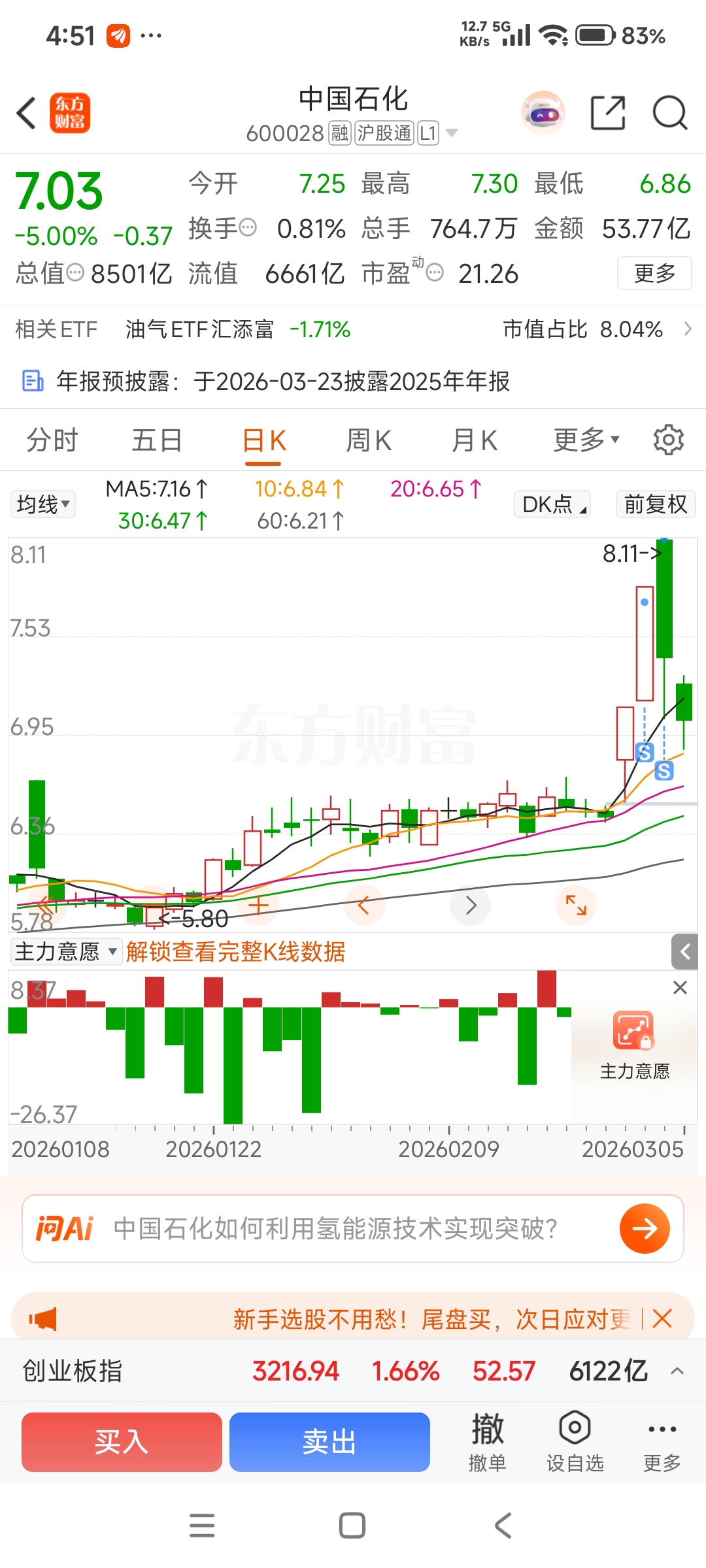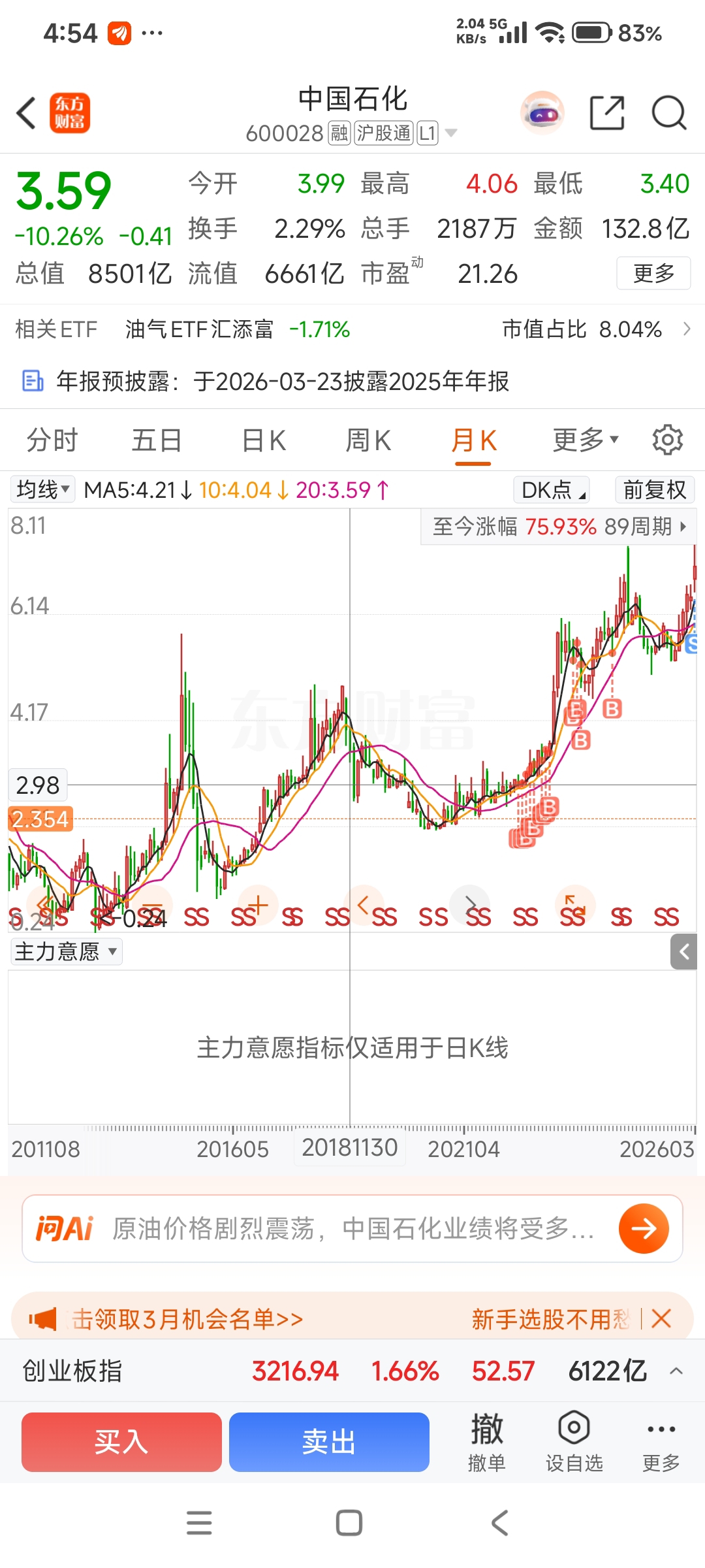 拿了几年石化一股都没卖过,前天和昨天大涨减了点仓,现成本降到2.35元,没什么压