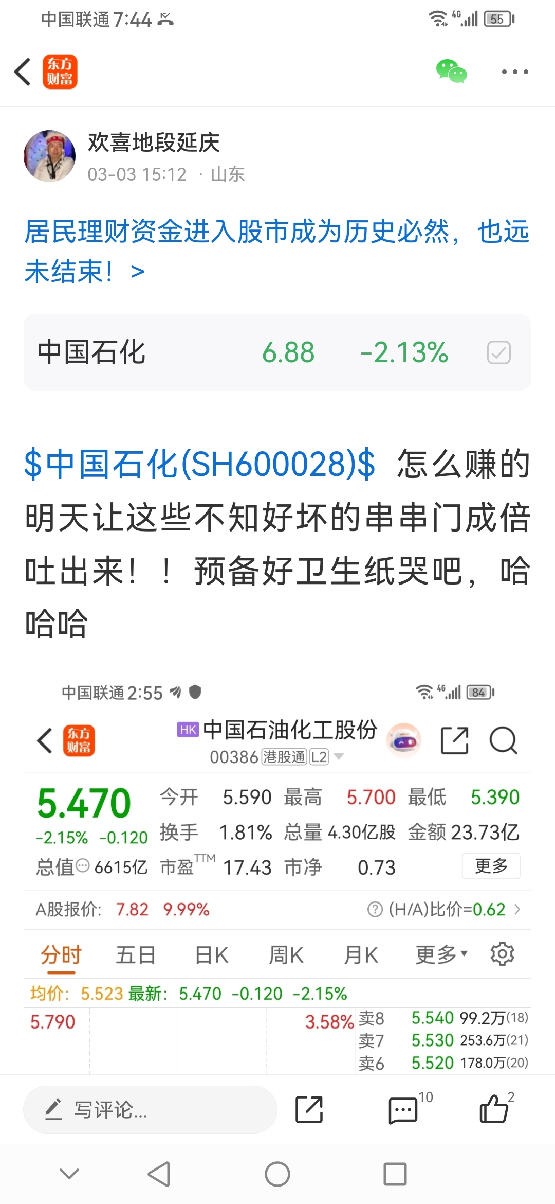 温馨提示: 1.根据《证券法》规定,禁止编造、传播虚假信息或者误导性信息,扰乱证券市场;2.用户在本社区发表的所有资料、言论等仅代表个人观点,与本网站立场无关,不对您构成任何投资建议。用户应基于自己的独立判断,自行决定证券投资并承担相应风险。《东方财富社区管理规定》