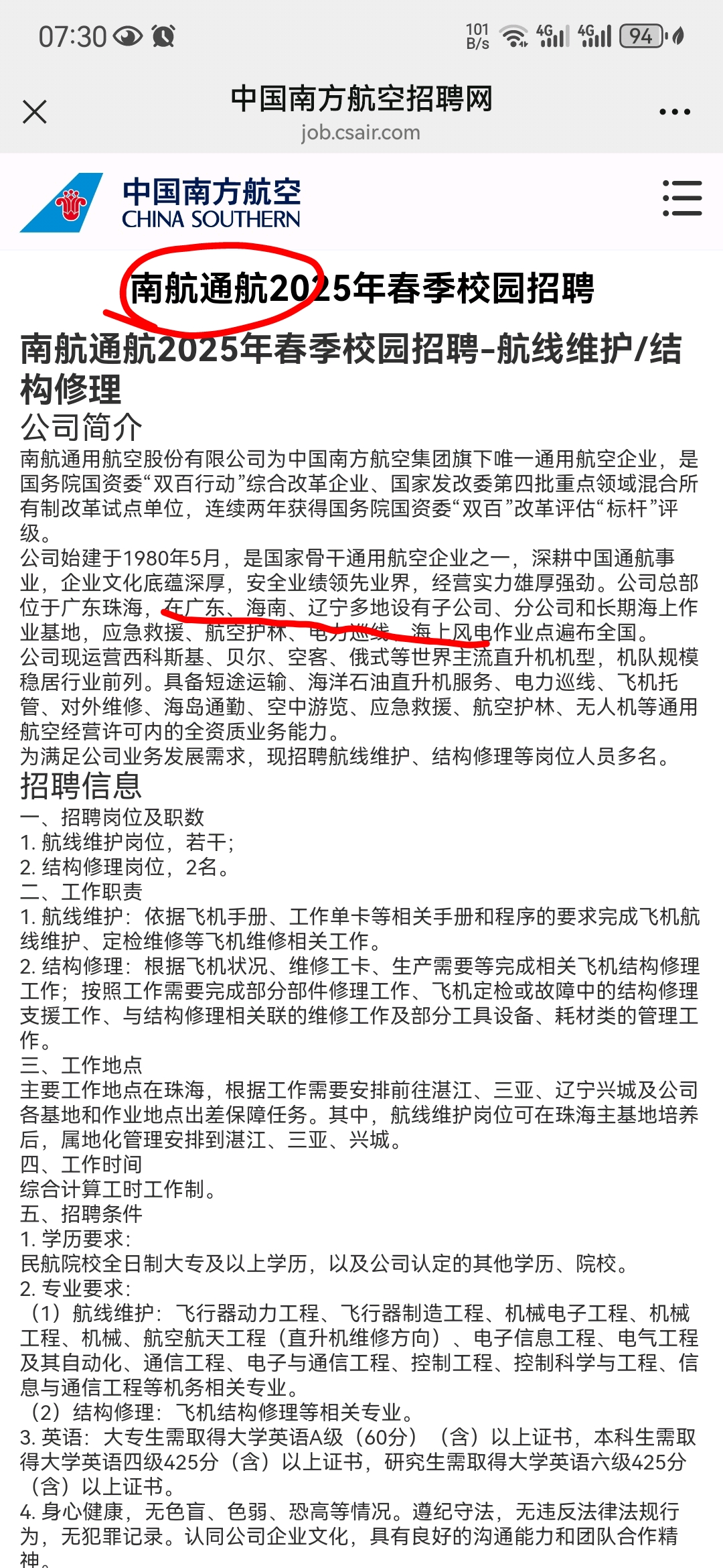 低空经济隐形赢家南航的通航公司春季校招开始了,不止珠海,东北都有通航基地。珠海,