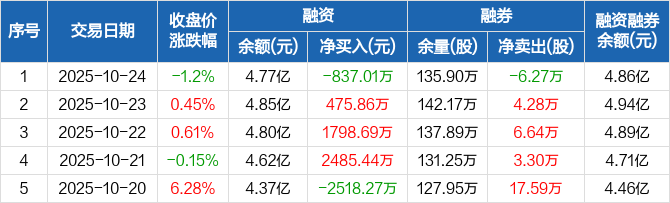 南方航空:融资净偿还837.01万元,融资余额4.77亿元(10-24)