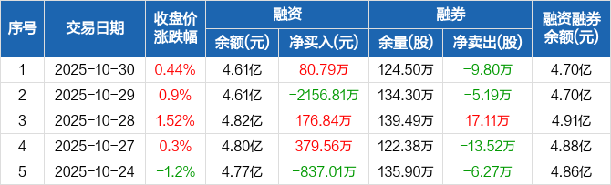 南方航空:融资净买入80.79万元,融资余额4.61亿元(10-30)