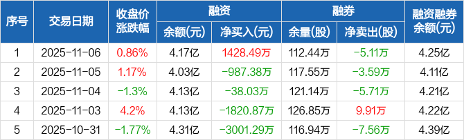 南方航空:融资净买入1428.49万元,融资余额4.17亿元(11-06)
