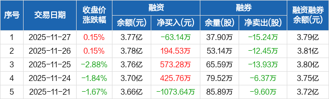 南方航空:融资净偿还63.14万元,融资余额3.77亿元(11-27)