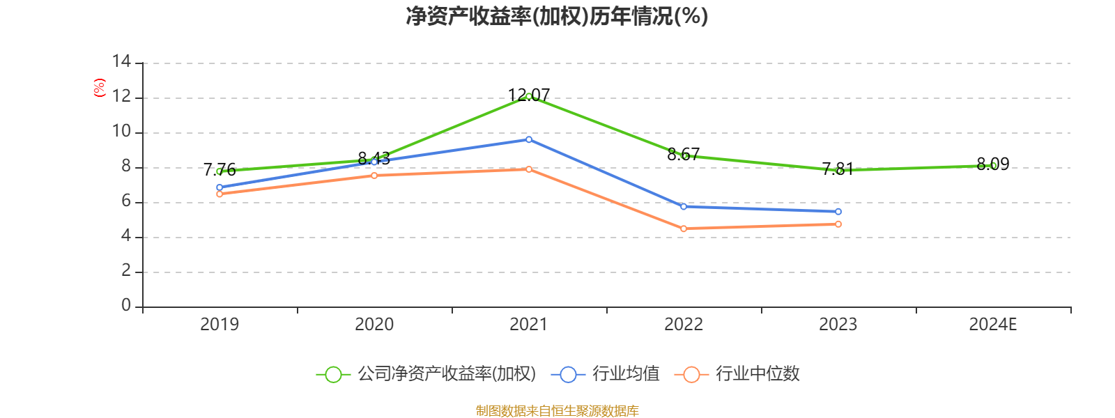 数据显示,2024年公司加权平均净资产收益率为8.09%,较上年同期上升0.28个百分点。