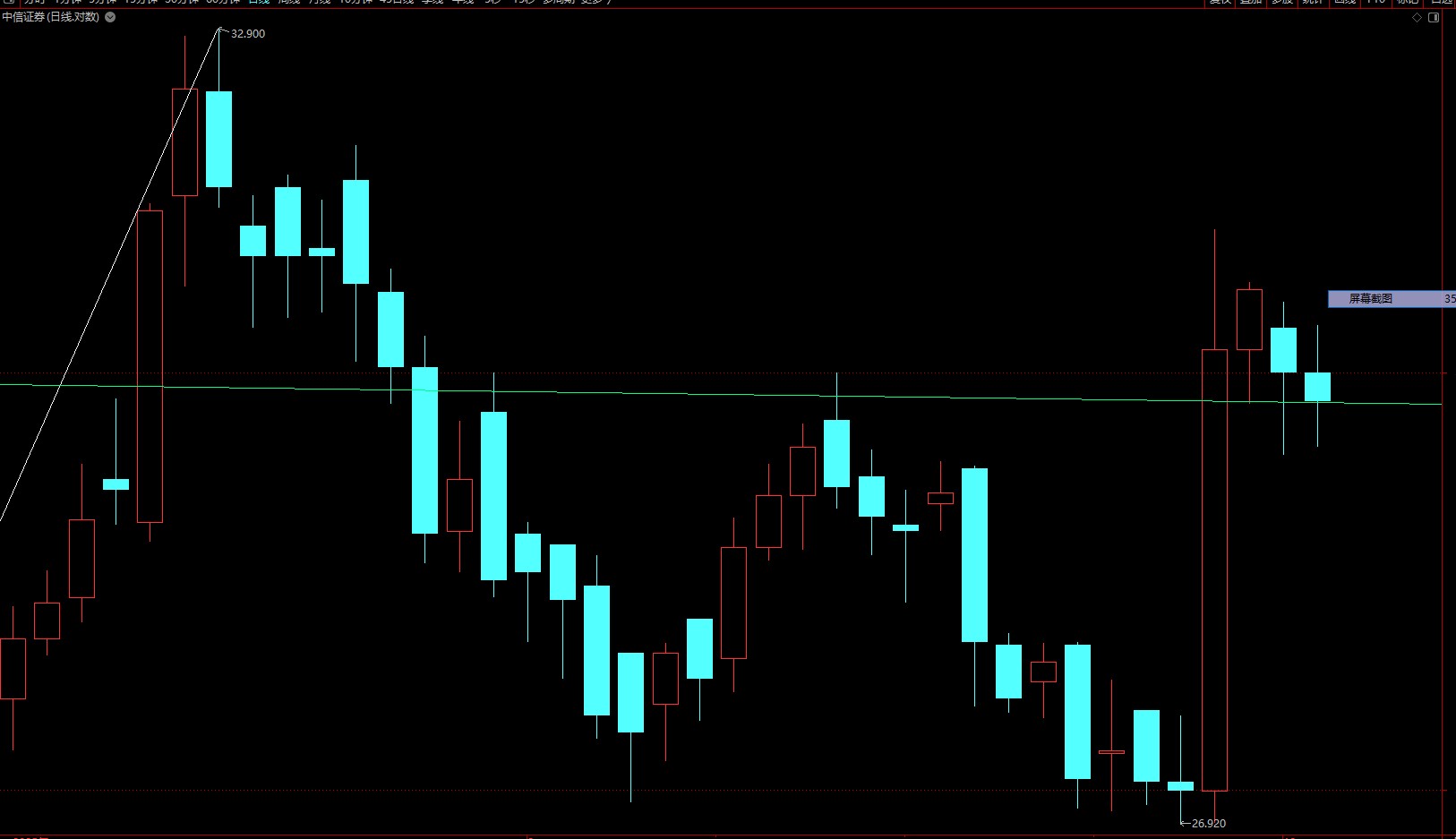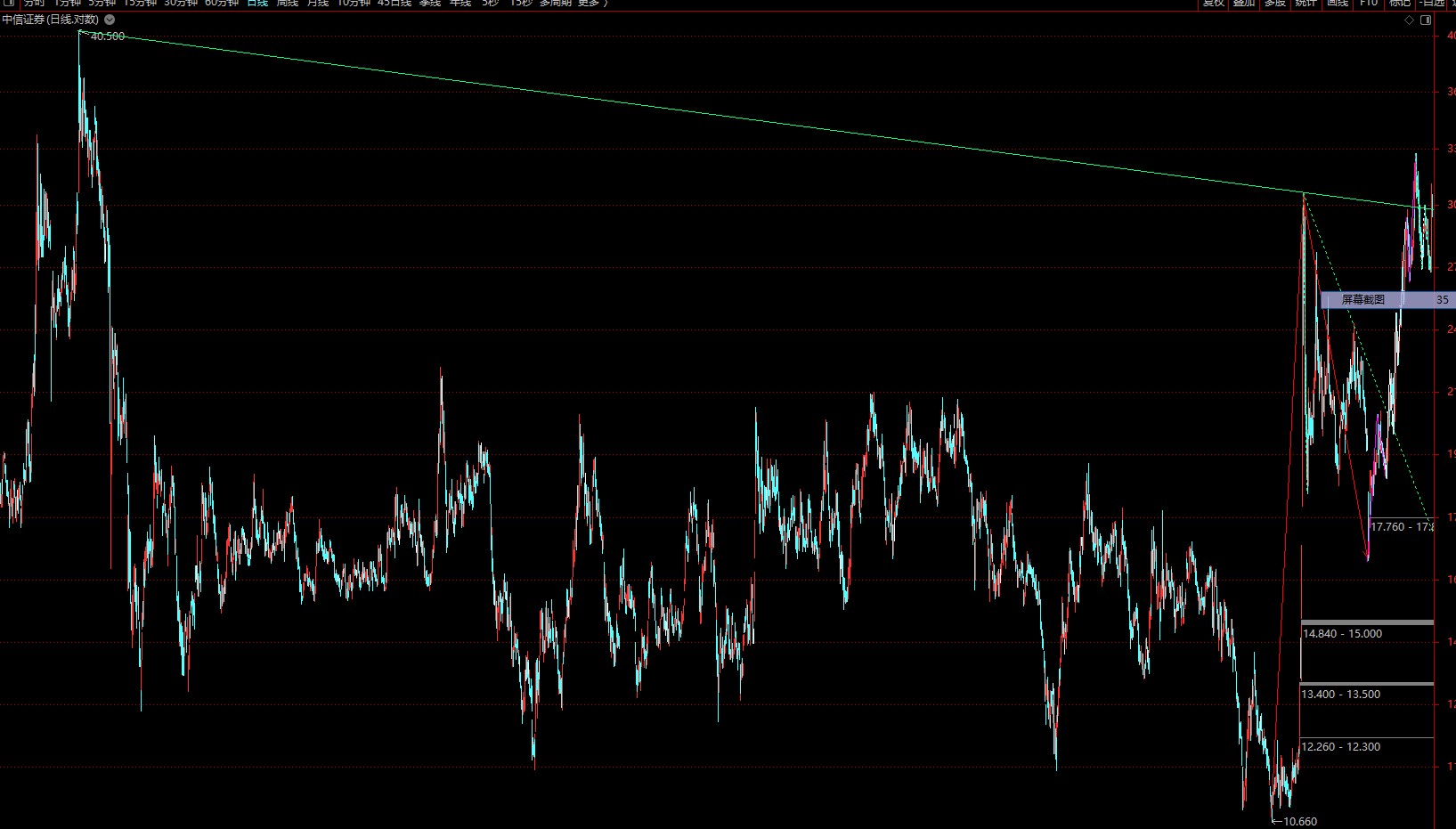 港股的中信证券,两高点的连线回测今天又没破
