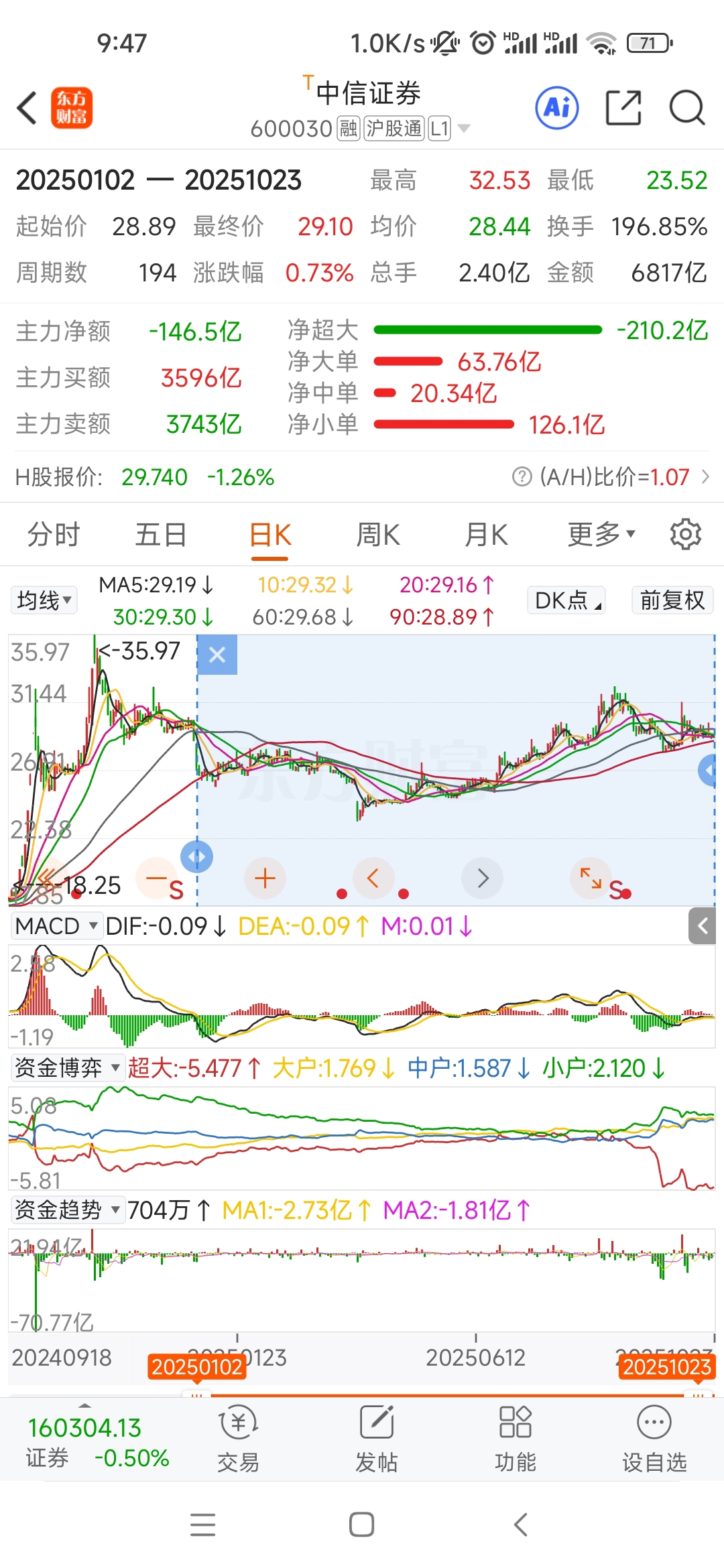 $中信证券(SH600030)$ 中信证券,一年涨幅0.73%,一年时间浪费了, 天天冲高回落,