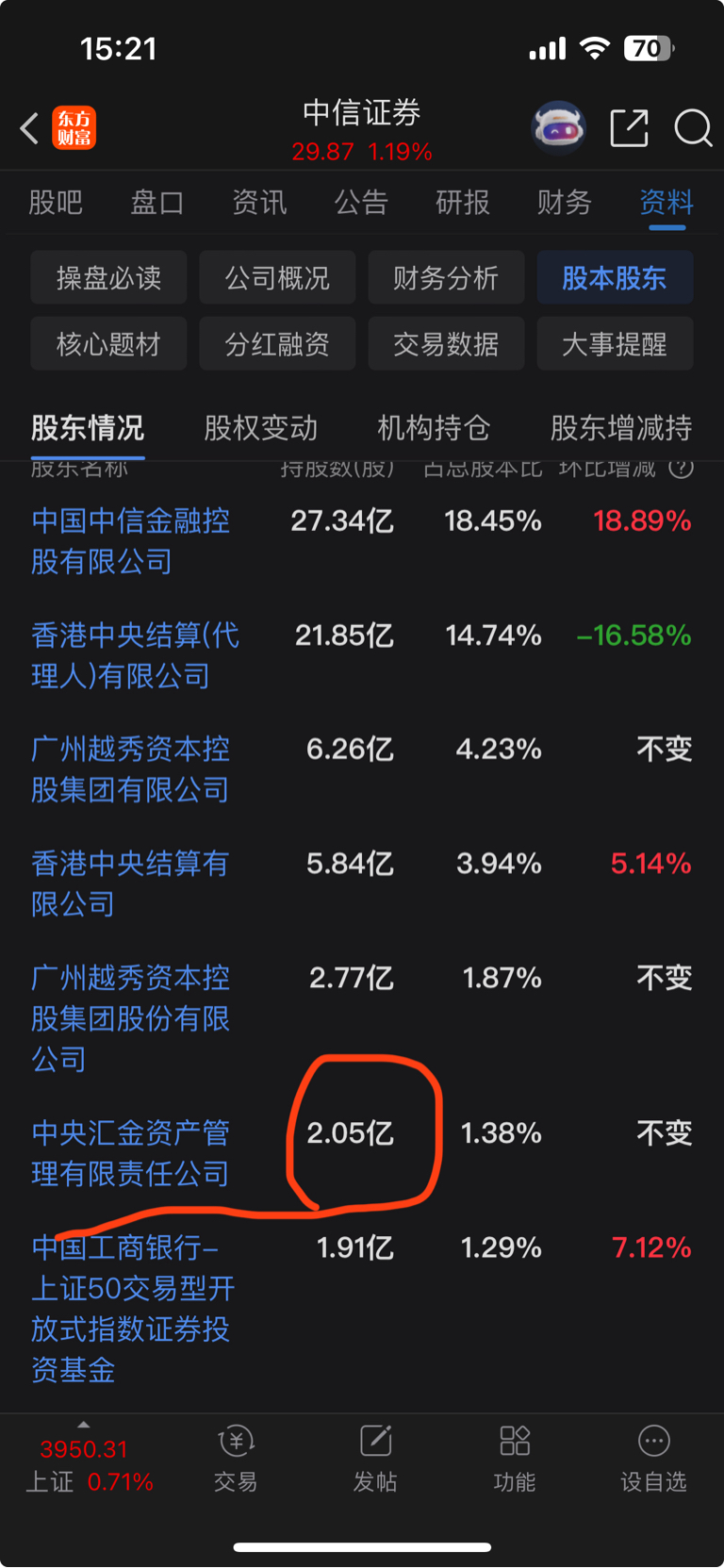 $中信证券(SH600030)$ 这就是今年没涨的原因。他一直在卖。