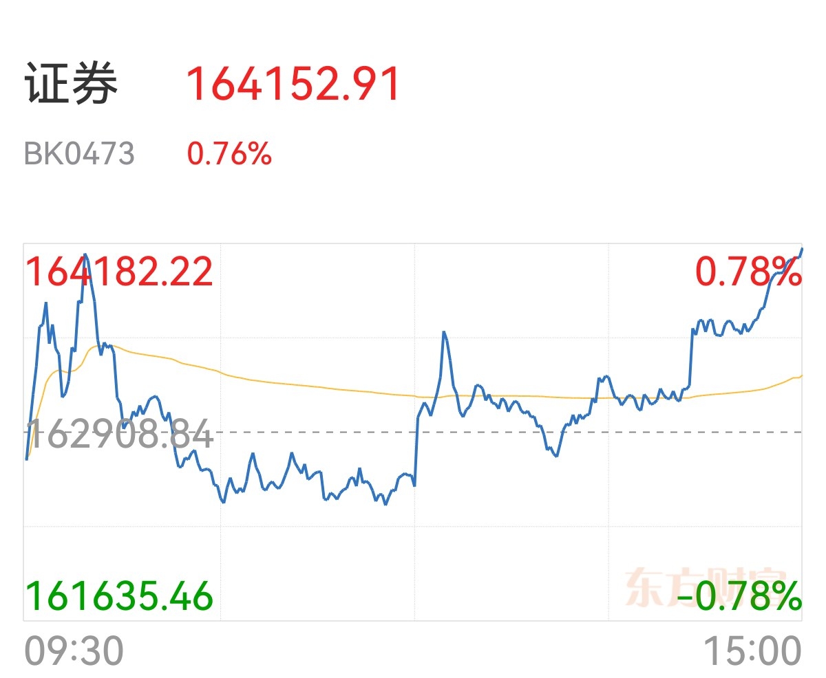 周五,证券板块一点半后从跌0.1%开始拉升,到尾盘反涨0.78%。其中国盛金控涨4.79%,长城证券涨3.09%,中信证券涨1.19%。