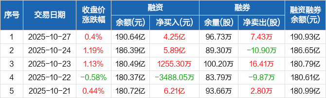 中信证券:融资余额190.64亿元,创近一年新高(10-27)