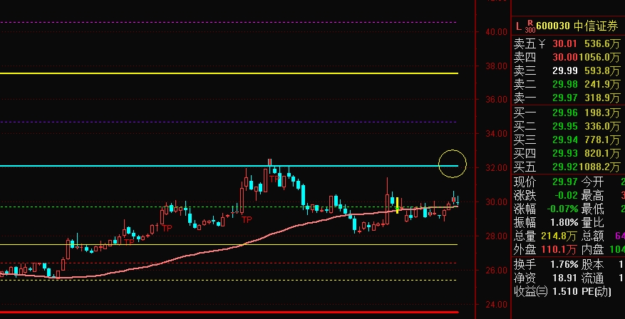 600030中信证券什么时候突破这个位置,就是大指数狂飙的时候