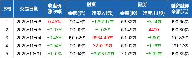 中信证券:融资净偿还1252.17万元,融资余额190.47亿元(11-06)