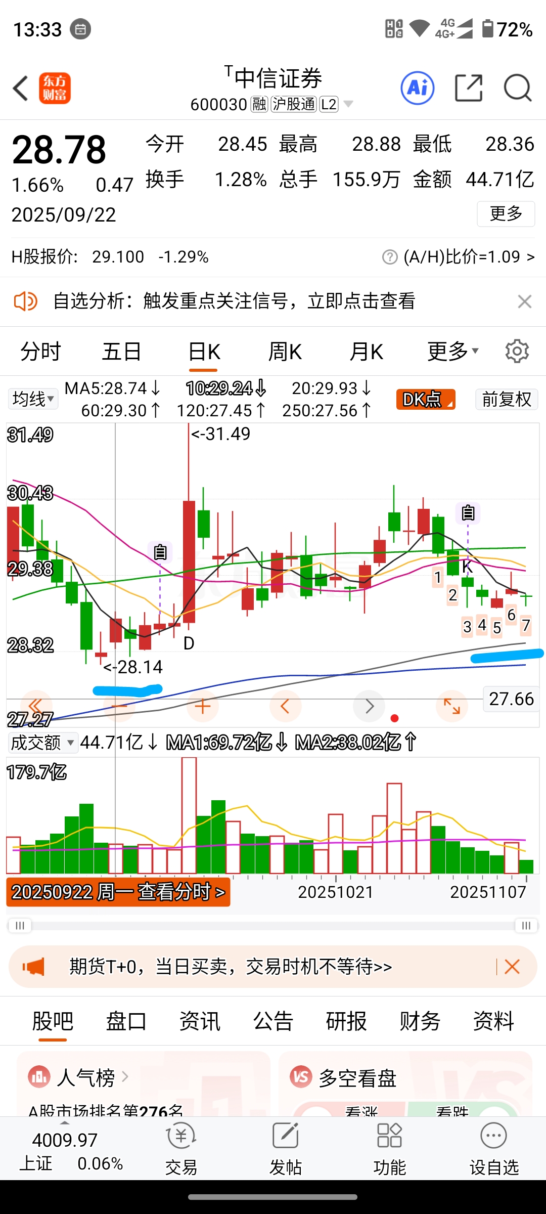 $中信证券(SH600030)$ 长线户9月22日那几天买的 如果不做高抛低吸 可以说没利润 这个慢牛让人难以理解